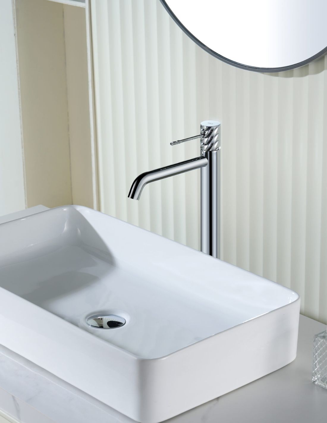 El Grifo monomando lavabo alto - cromo BLESS de IMEX es la solución definitiva para lavabos sobre encimera que requieren una pieza con carácter y presencia. Su diseño de líneas cuadradas y ángulos rectos se eleva con una verticalidad arquitectónica, convirtiendo la zona de aseo en un punto focal de modernidad y estilo.