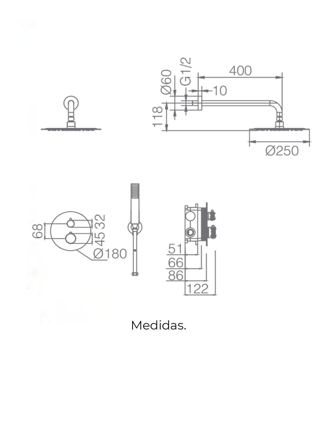 - Grifo de ducha a pared