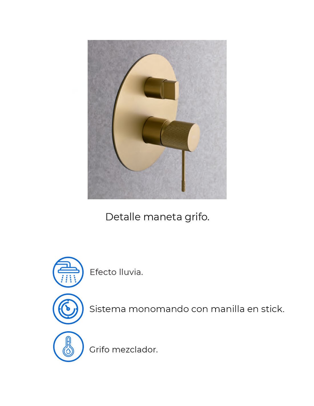 Características principales del Grifo empotrado dorado - ducha oro cepillado LINE de IMEX: