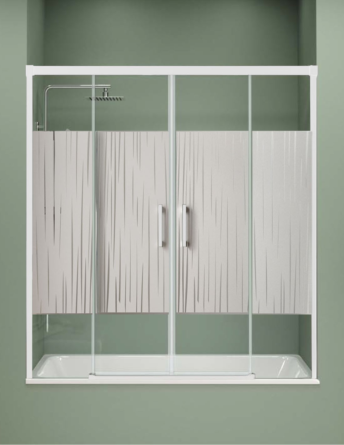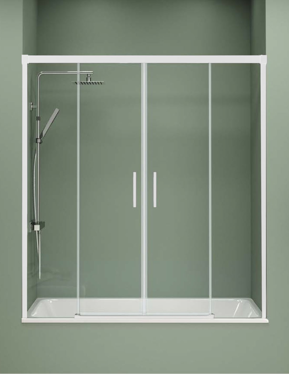Mampara bañera frontal blanca modelo Jazz de 2 fijos y 2 correderas