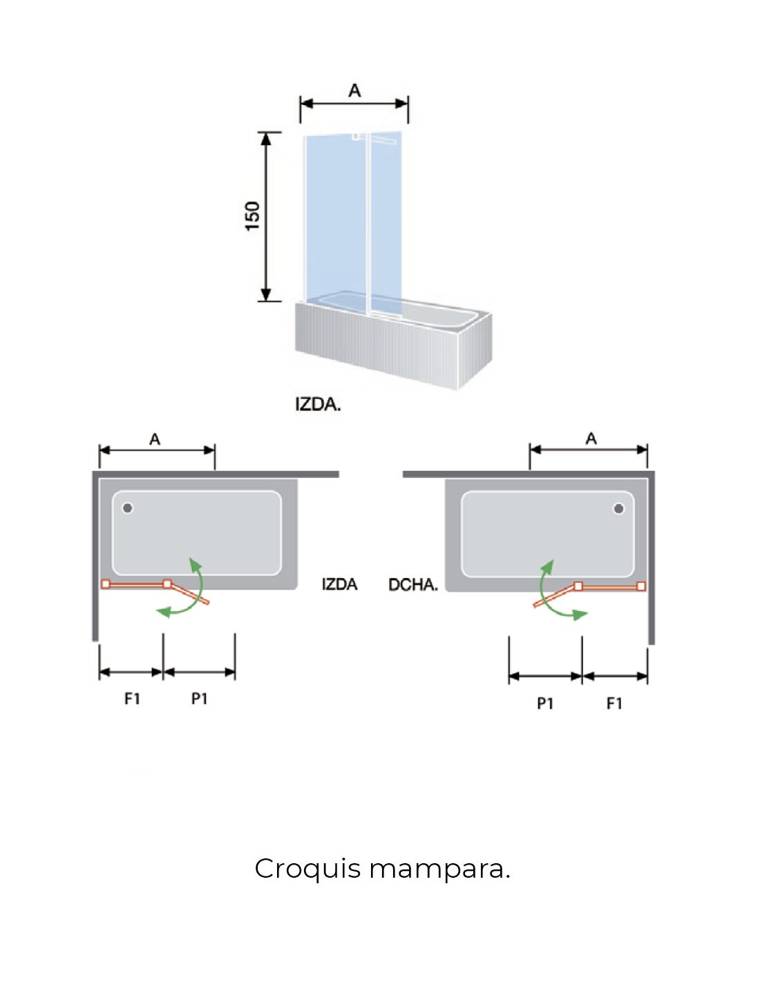 Mampara bañera fijo más abatible croquis