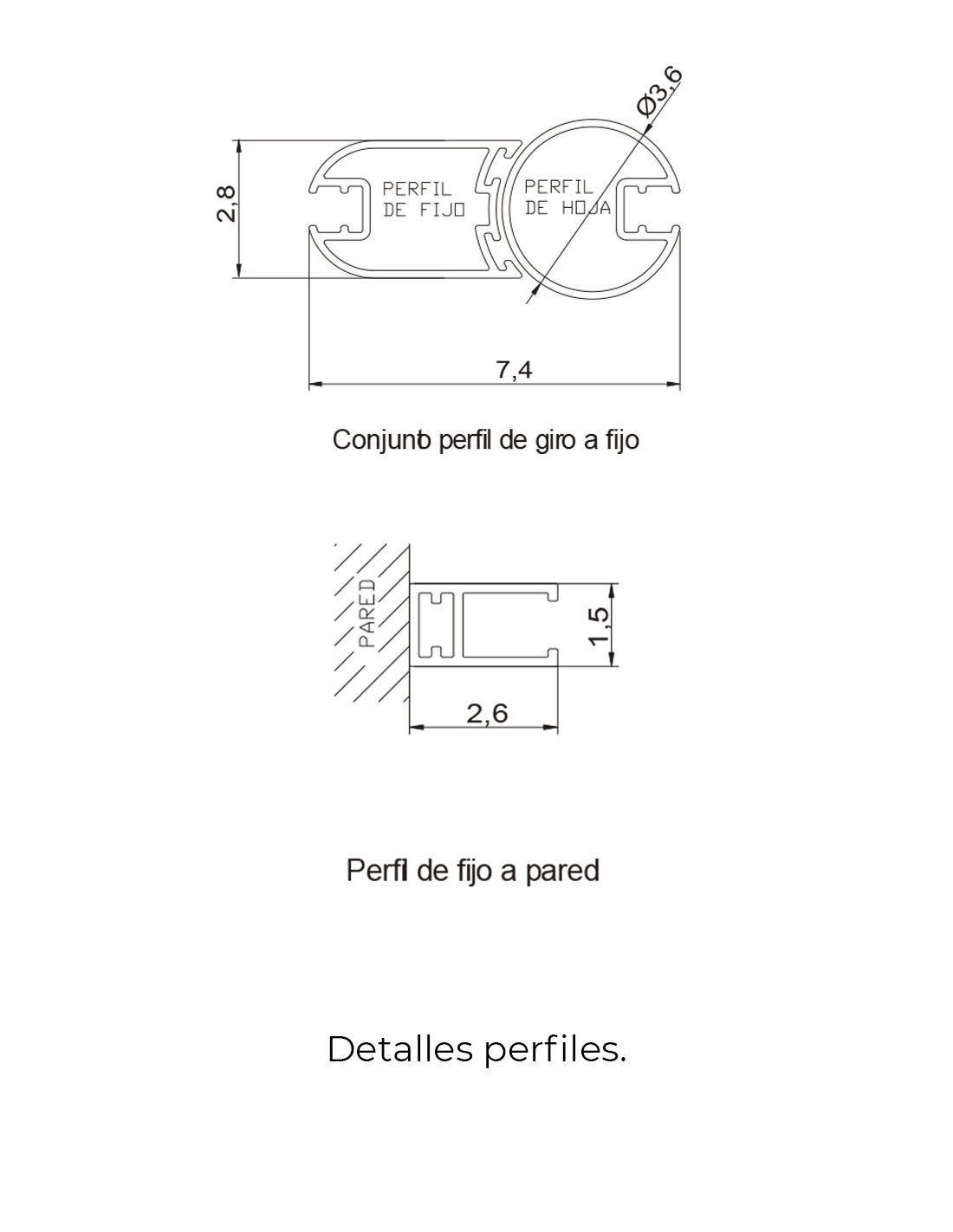 1 fijo + 1 hoja abatible a hueco abierto