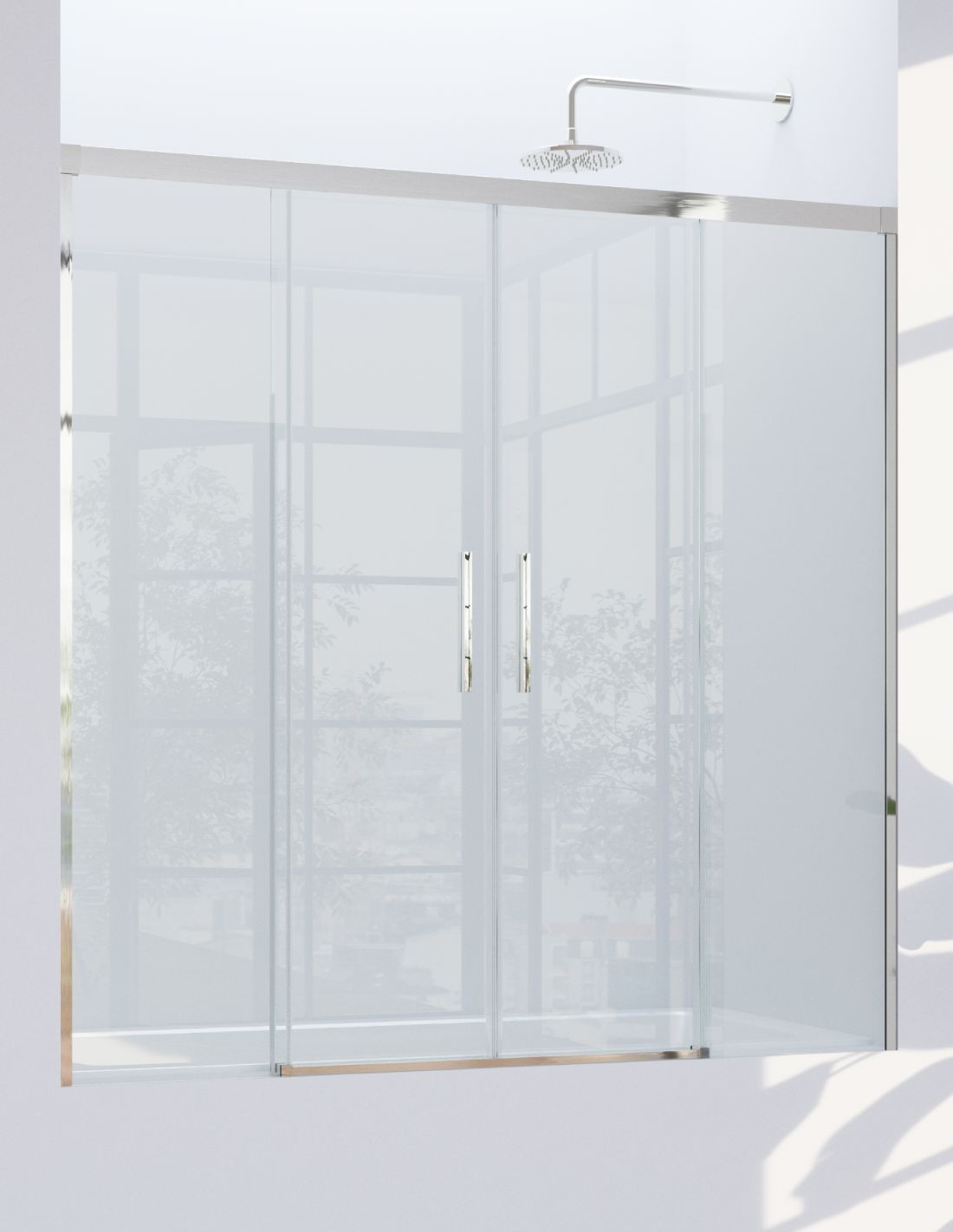 Mampara de bañera de 2 hojas fijas y 2 puertas correderas CAUCE de Bathplus.