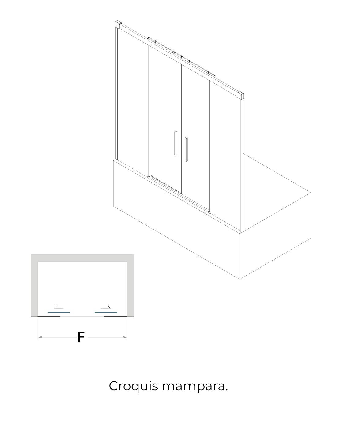 Características generales de la mampara negra de bañera de 2 hoja fija y 2 puerta corredera: