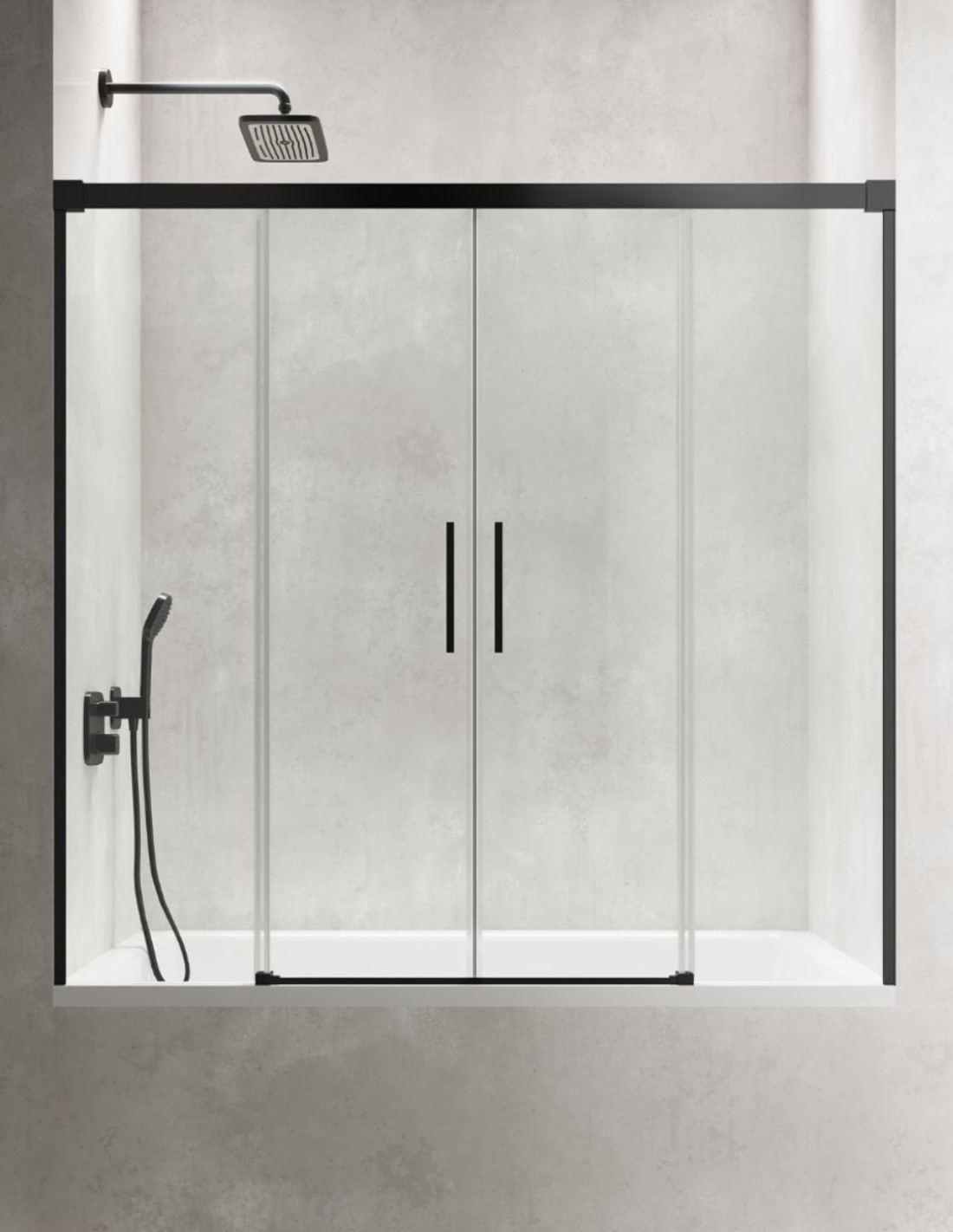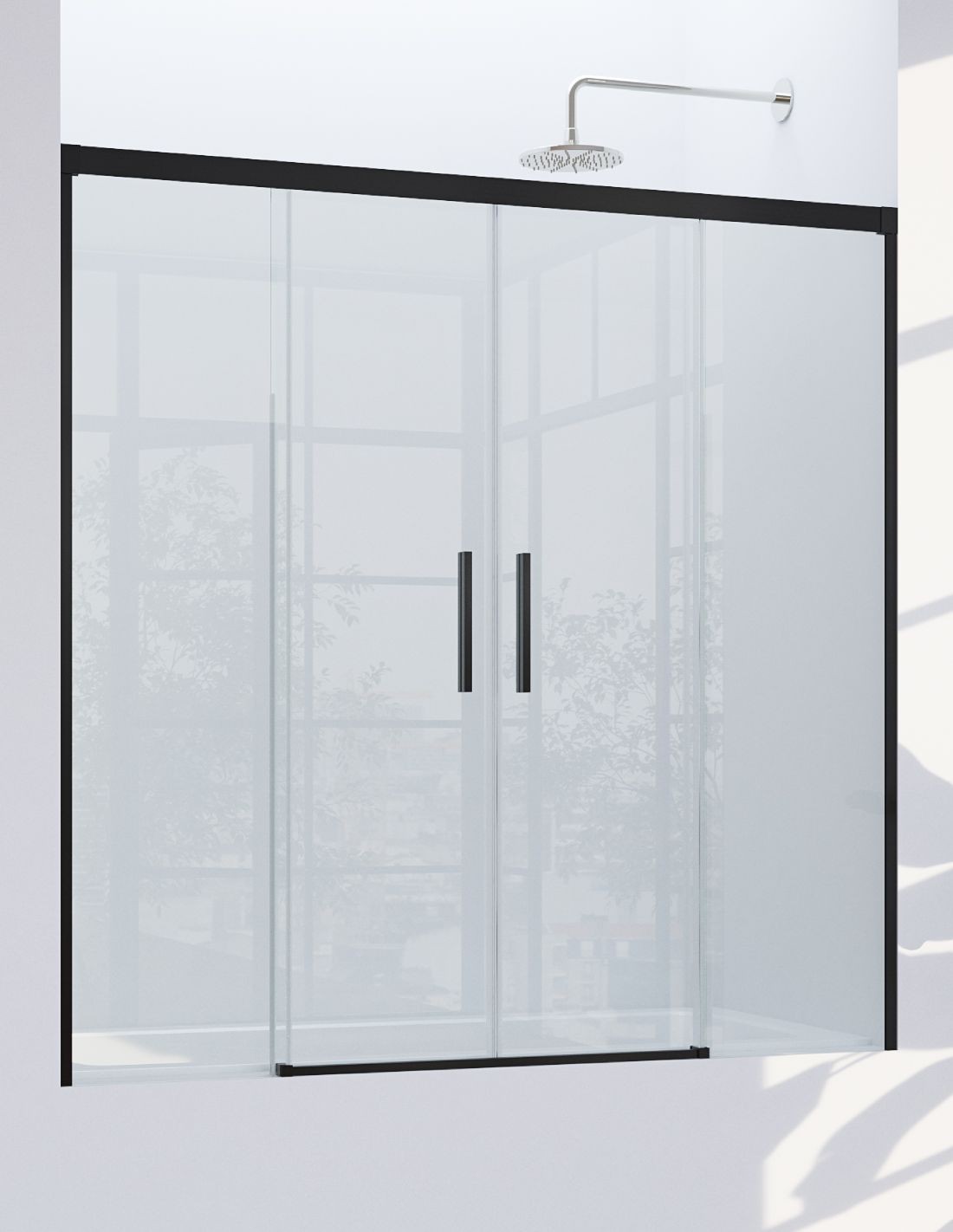 Mampara negra de bañera de 2 hojas fijas y 2 puertas correderas CAUCE de Bathplus.
