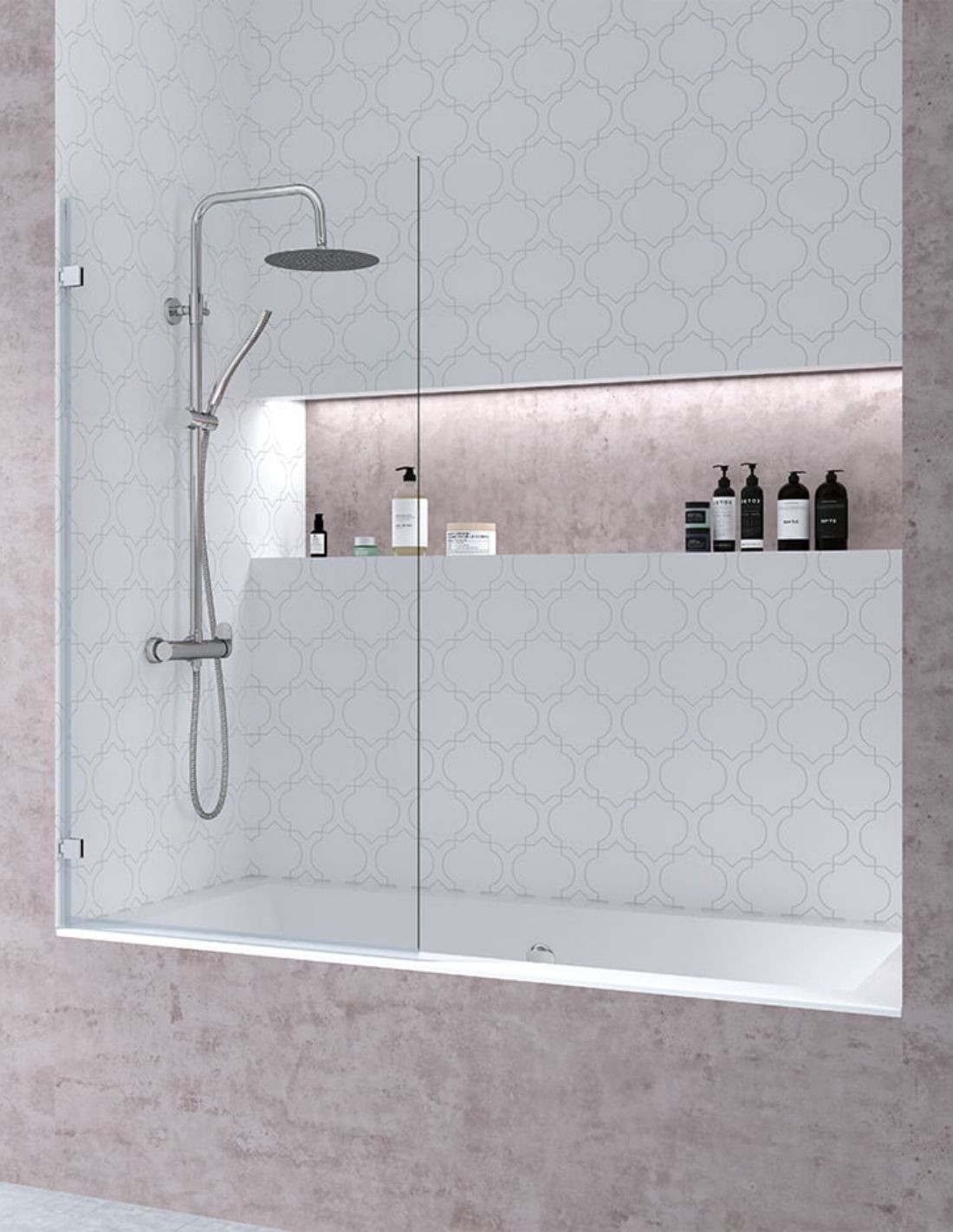 El vidrio templado ofrece a tu mampara la máxima seguridad ya que, en caso de rotura, el cristal se parte en trozos pequeños que no se desprenden de la estructura, evitando el riesgo de cortes.