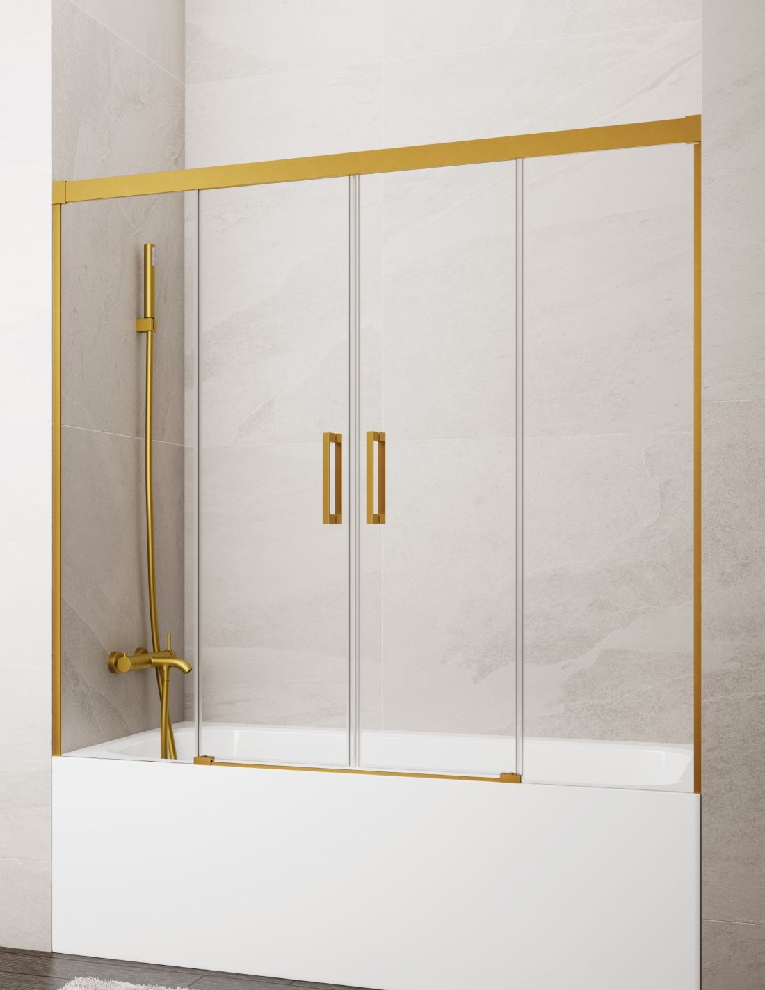 Mampara bañera Basic GME Dorada - 2 fijos y 2 correderas sin perfil inferior