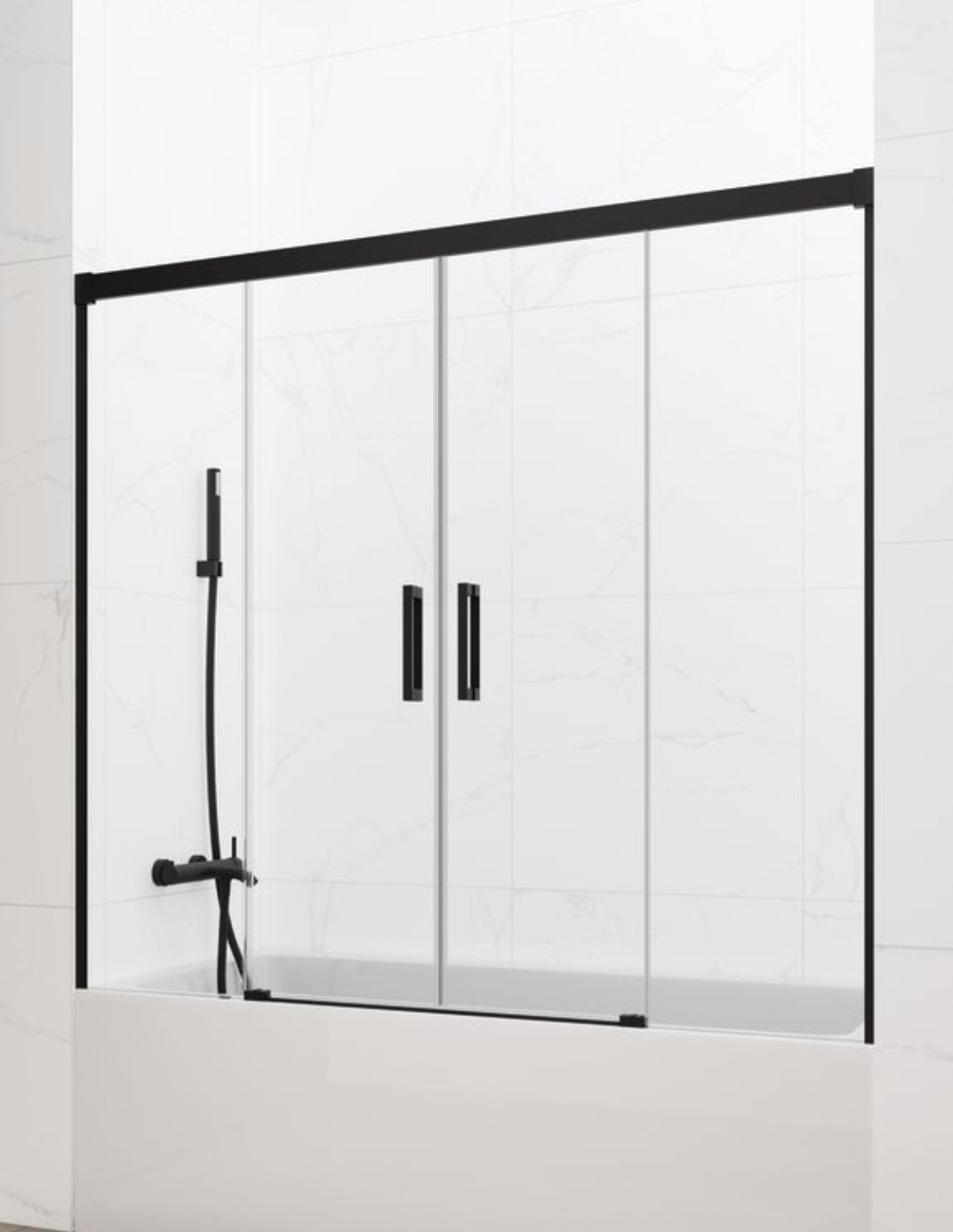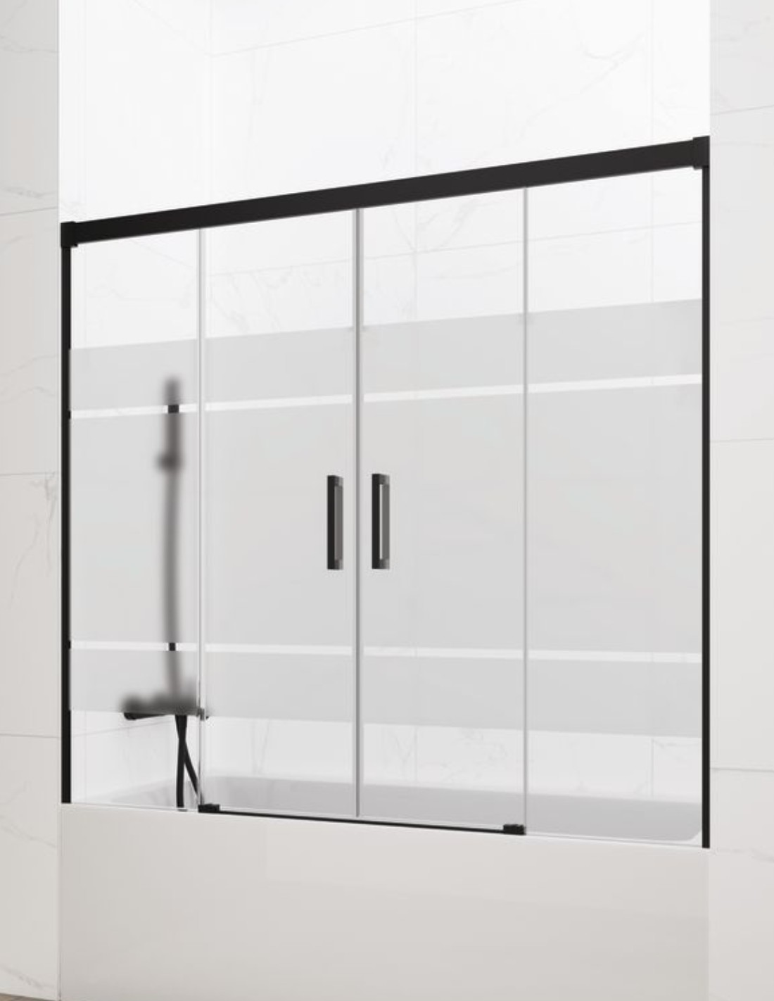 Mampara bañera Basic GME Negra modelo 2 fijos y 2 correderas sin perfil inferior