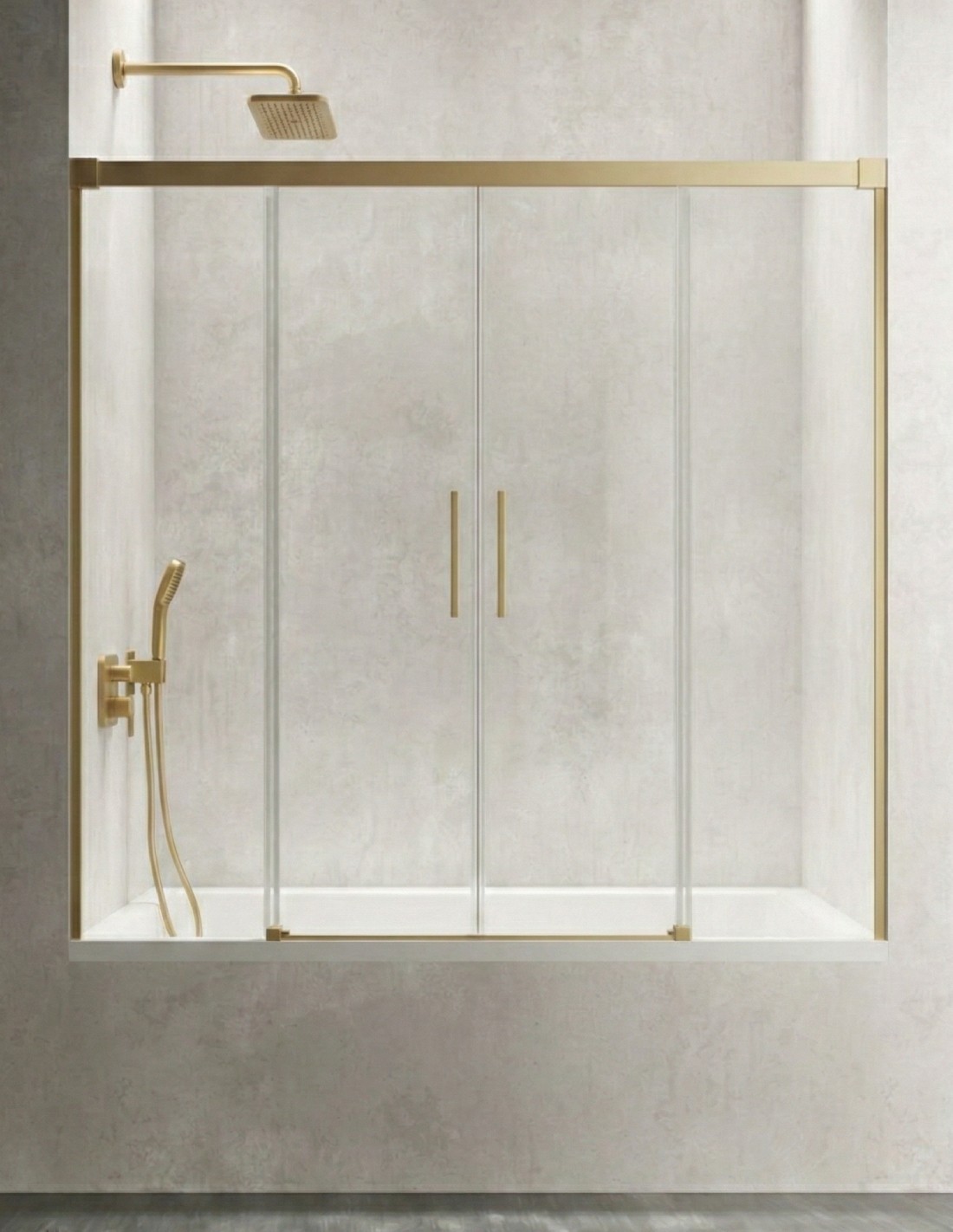 Mampara oro cepillado de bañera de 2 hojas fijas y 2 puertas correderas CAUCE de Bathplus.