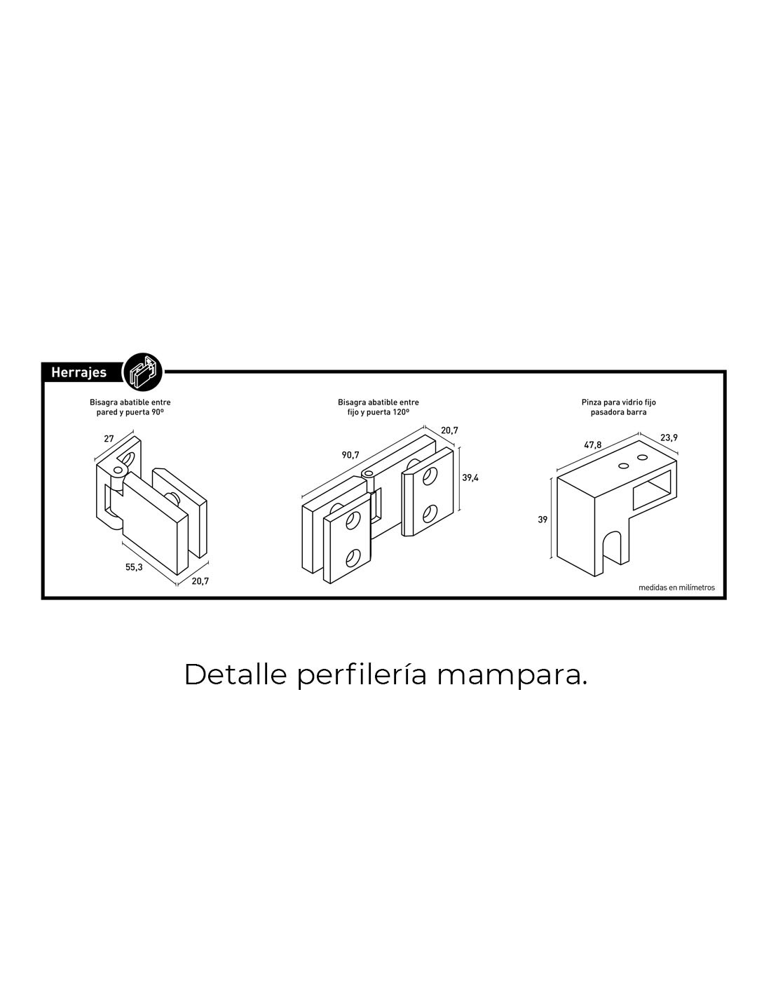 - Reversible: Posibilidad de invertir la mampara cuando se realiza la instalación, consiguiendo elegir la apertura que deseemos (a izquierda o derecha).