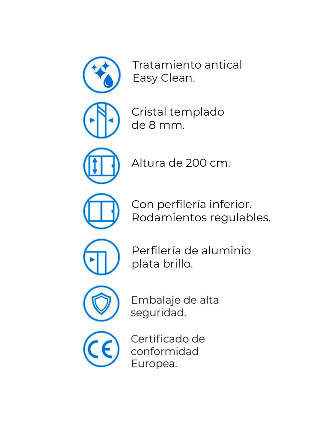 Además, este cristal incluye tratamiento antical 'Easy Clean' de serie. Dicho tratamiento está incorporado en la superficie de la mampara y evita que la cal u otras sustancias se adhieran al vidrio, facilitando su limpieza y prolongando la vida del vidrio.