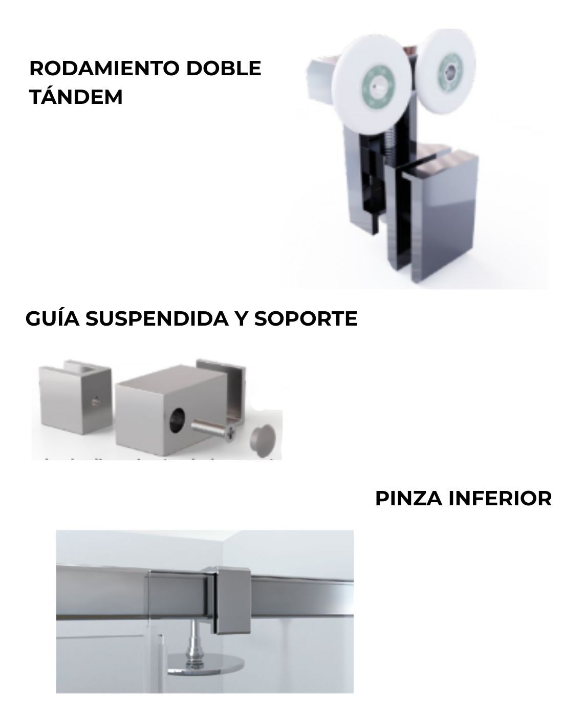 - Vidrio templado de seguridad de 6 mm. las puertas y 8 mm. los fijos.