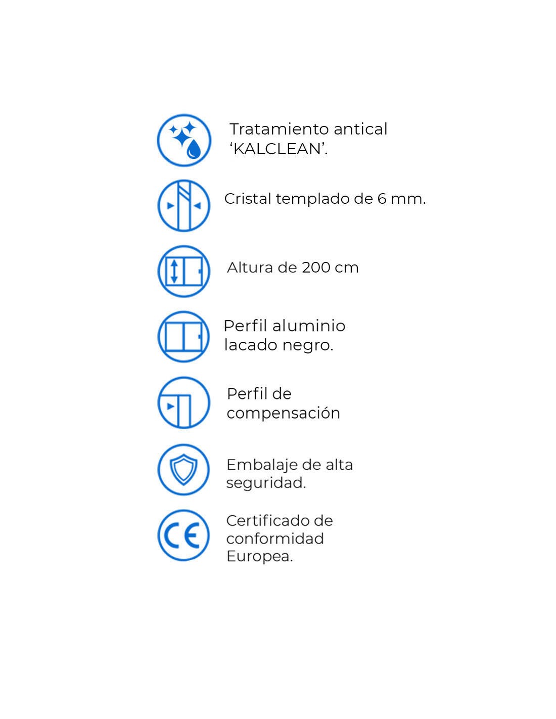 Características principales de la Mampara de ducha negra tres hojas correderas - BOGA Black Line de Seviban: