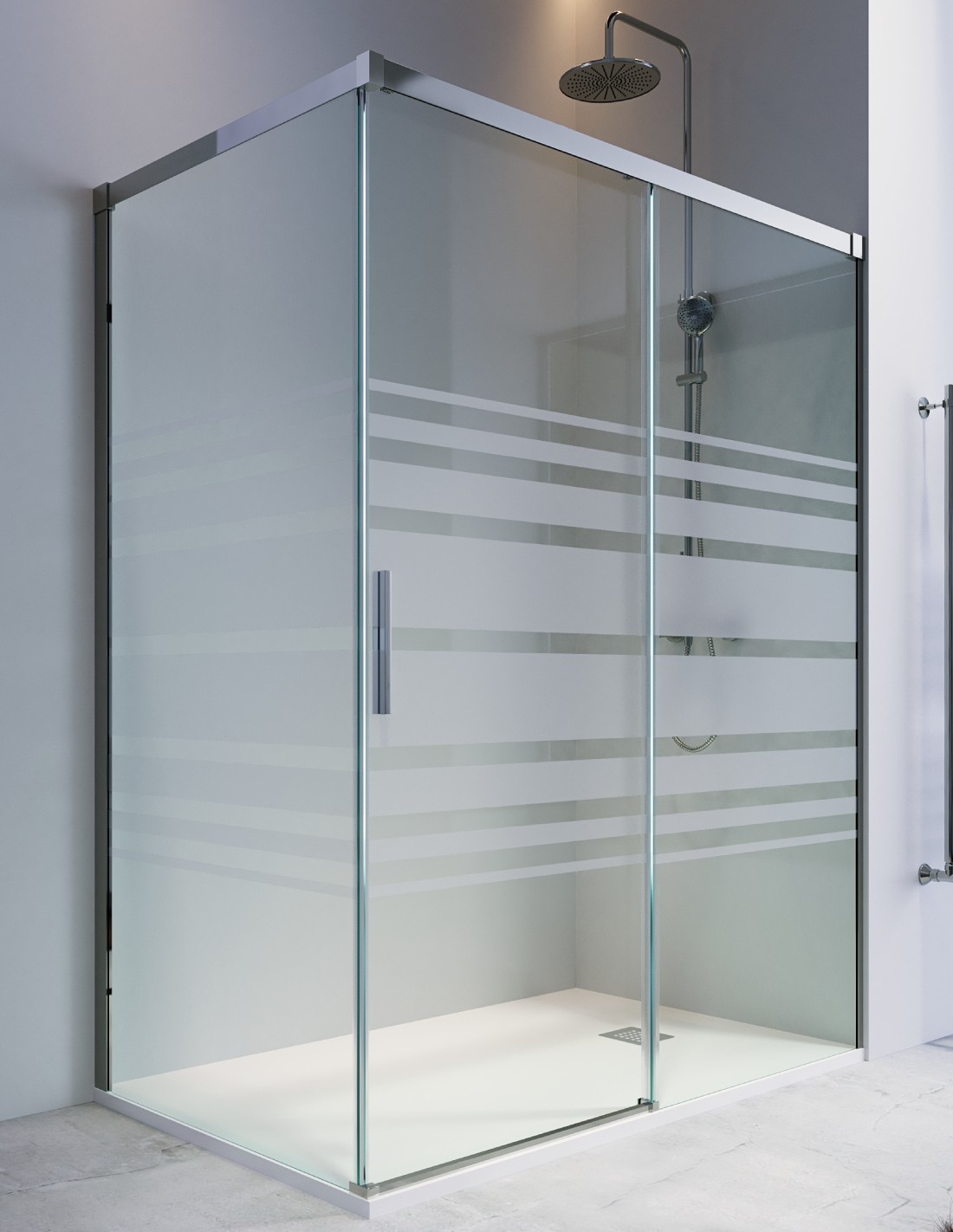 Mampara de ducha 1 hoja fija y 1 puerta corredera + lateral fijo - CAUCE de Bathplus