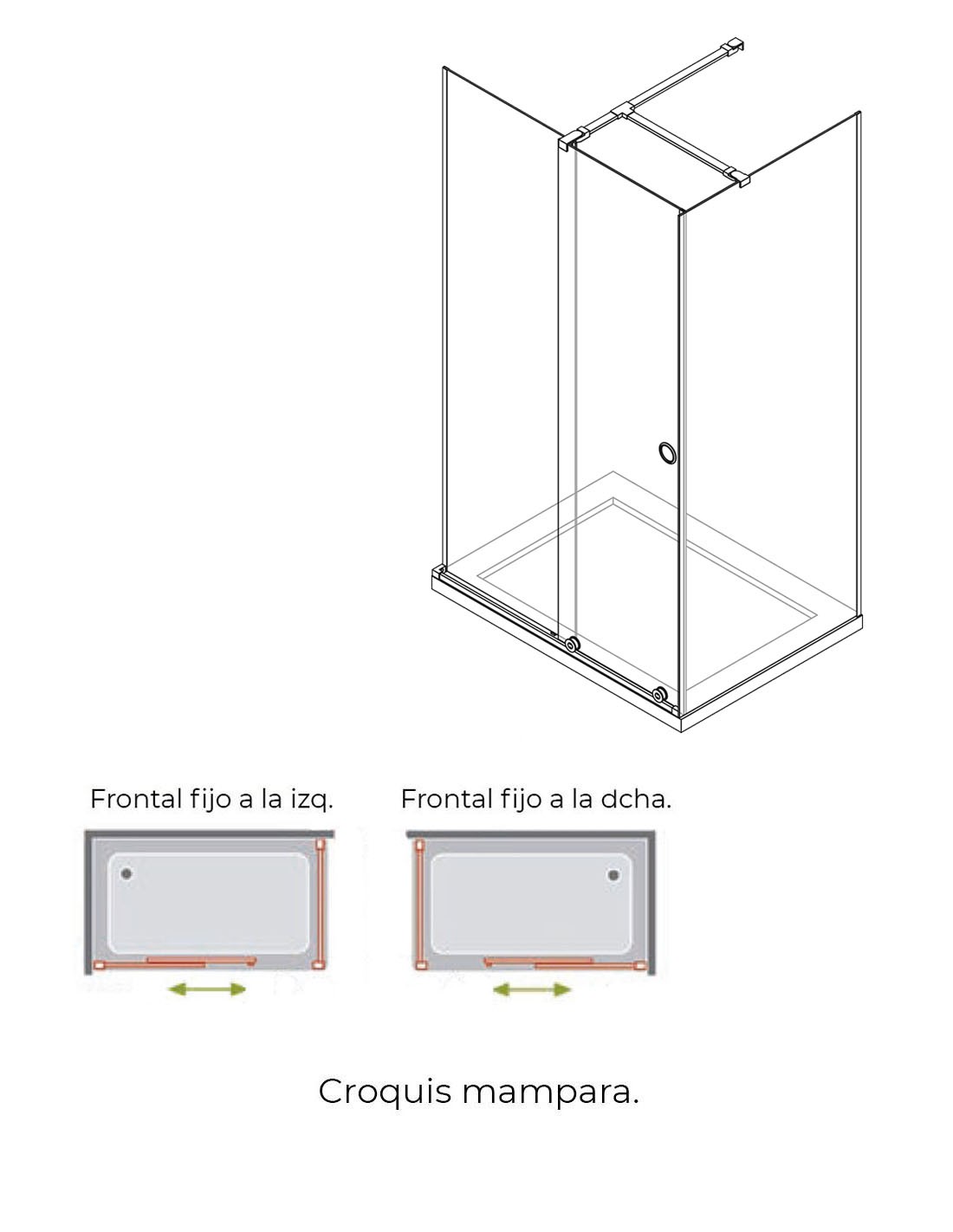 - Frontal 1 fijo + 1 puerta corredera + 1 lateral fijo