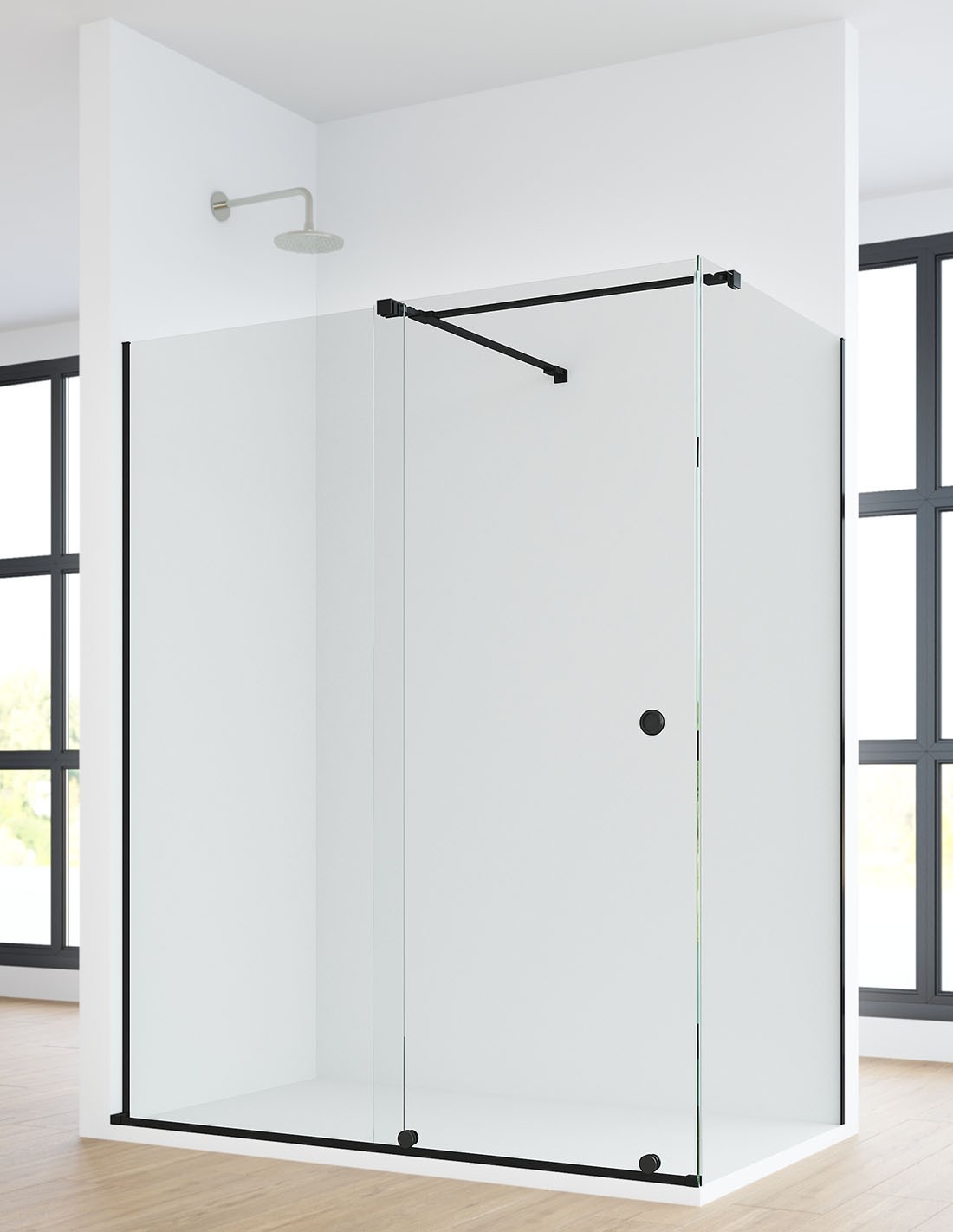 Mampara de ducha acero inoxidable negra + lateral fijo modelo LIFE de Bathplus con perfilería minimalista de acero inoxidable lacada negra mate para darle un toque elegante y de amplitud visual a tu baño.