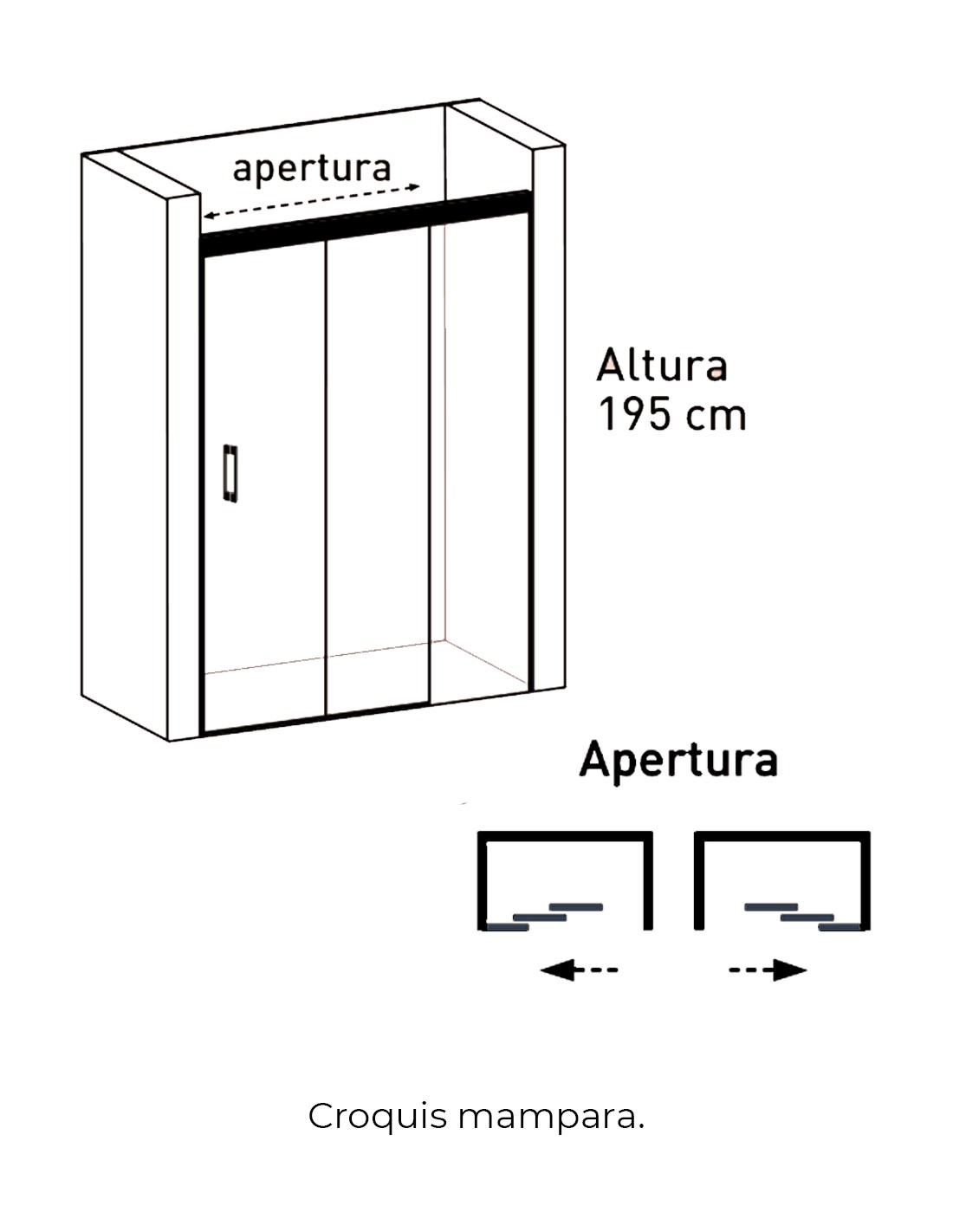 - Mampara de ducha de 2 puertas correderas + 1 fijo.