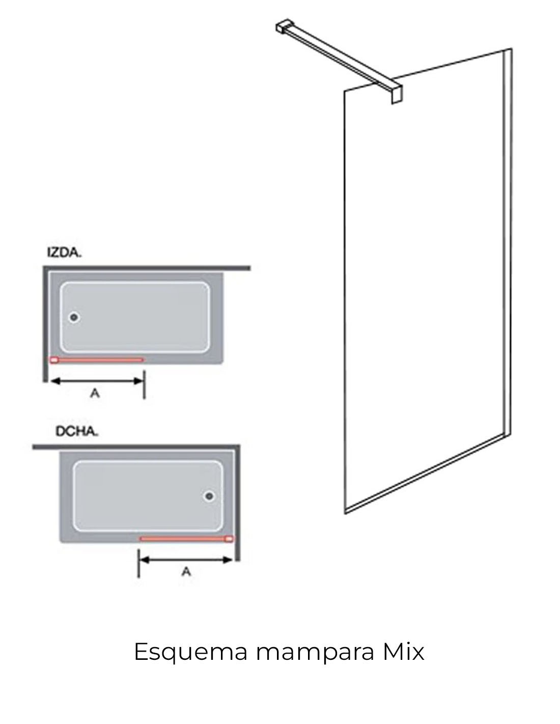 Así, puedes escoger tu mampara modelo Mix en medidas diferentes. Gracias al perfil de compensación puede adaptar la mampara a la medida exacta que precise.