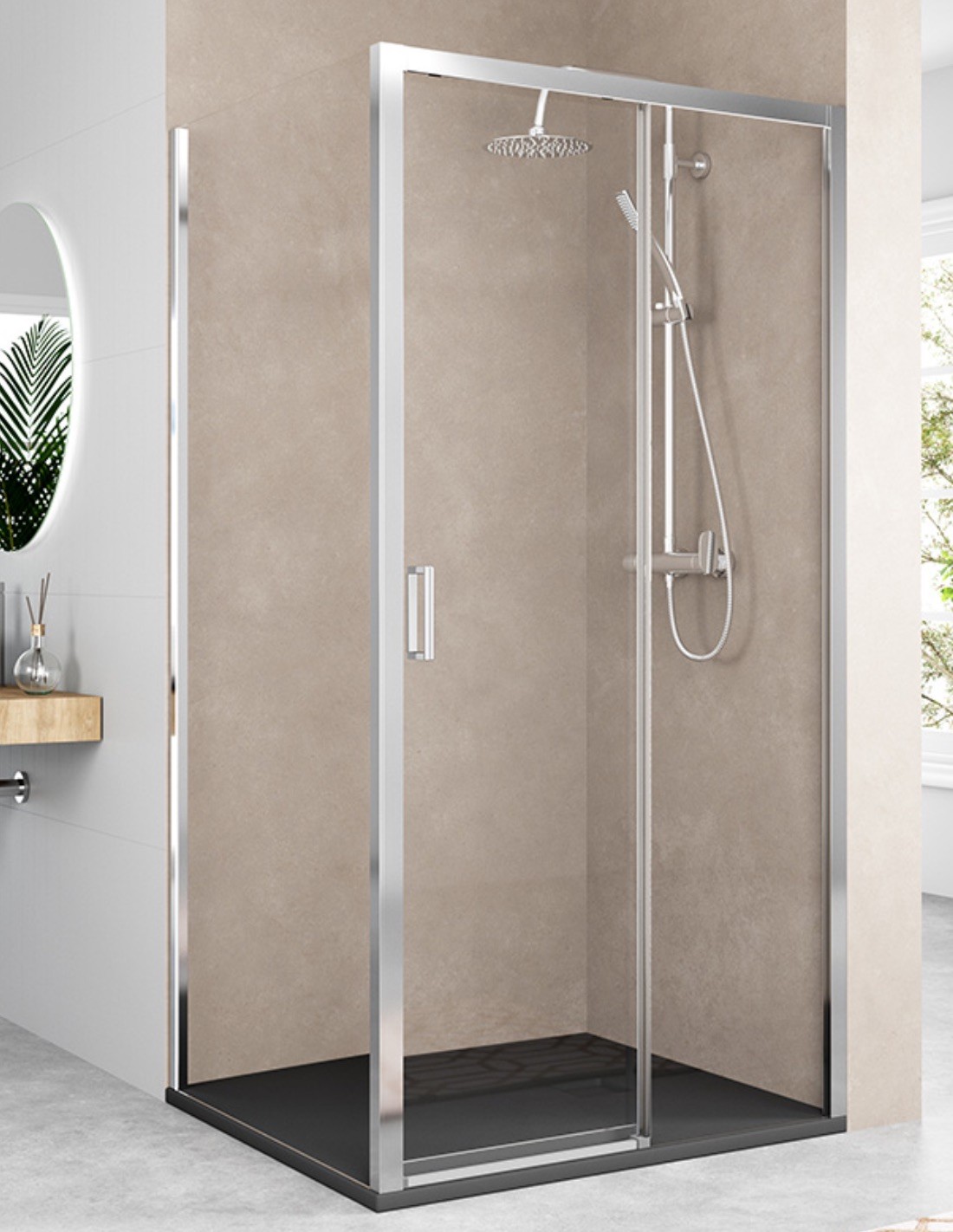 Características principales de la mampara frontal cromo + fijo lateral Tokio de Bathplus:
