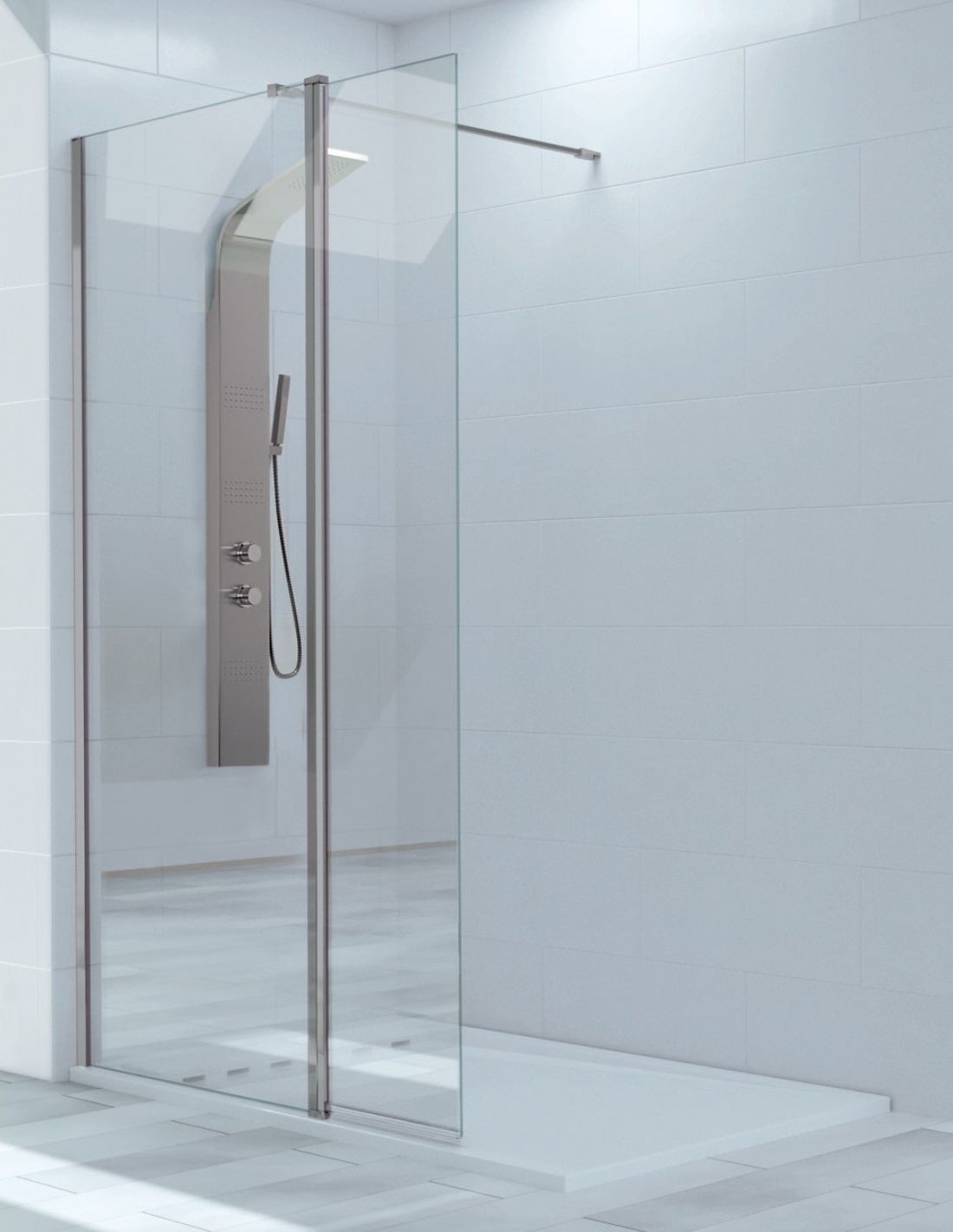 Mampara cristal fijo + abatible perfil plata Polaris de Kassandra diseño perfiles