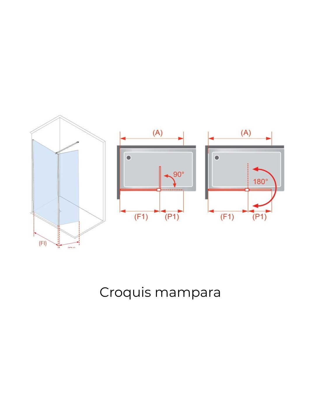 Mampara cristal fijo + abatible perfil plata Polaris de Kassandra croquis
