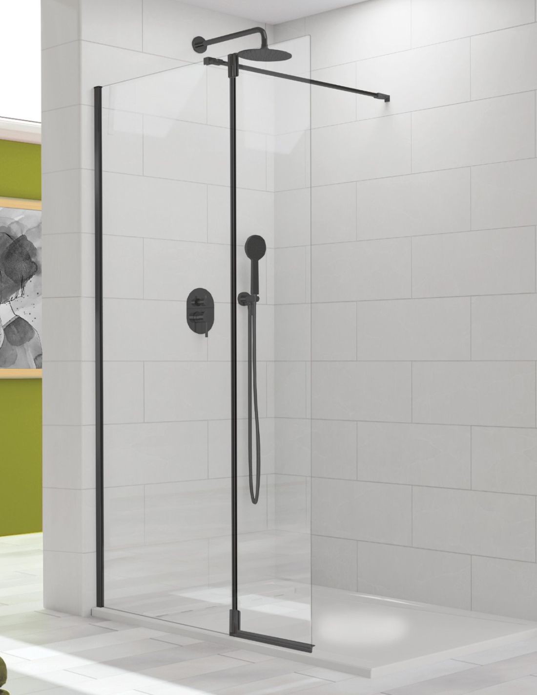 Mampara de ducha fijo más abatible perfil Negro TUTTI de Kassandra diseño perfiles