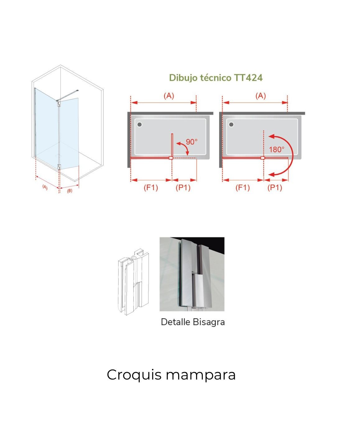 Características principales de la mampara de ducha fijo más abatible TUTTI: