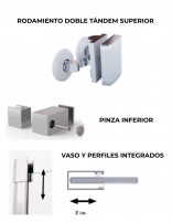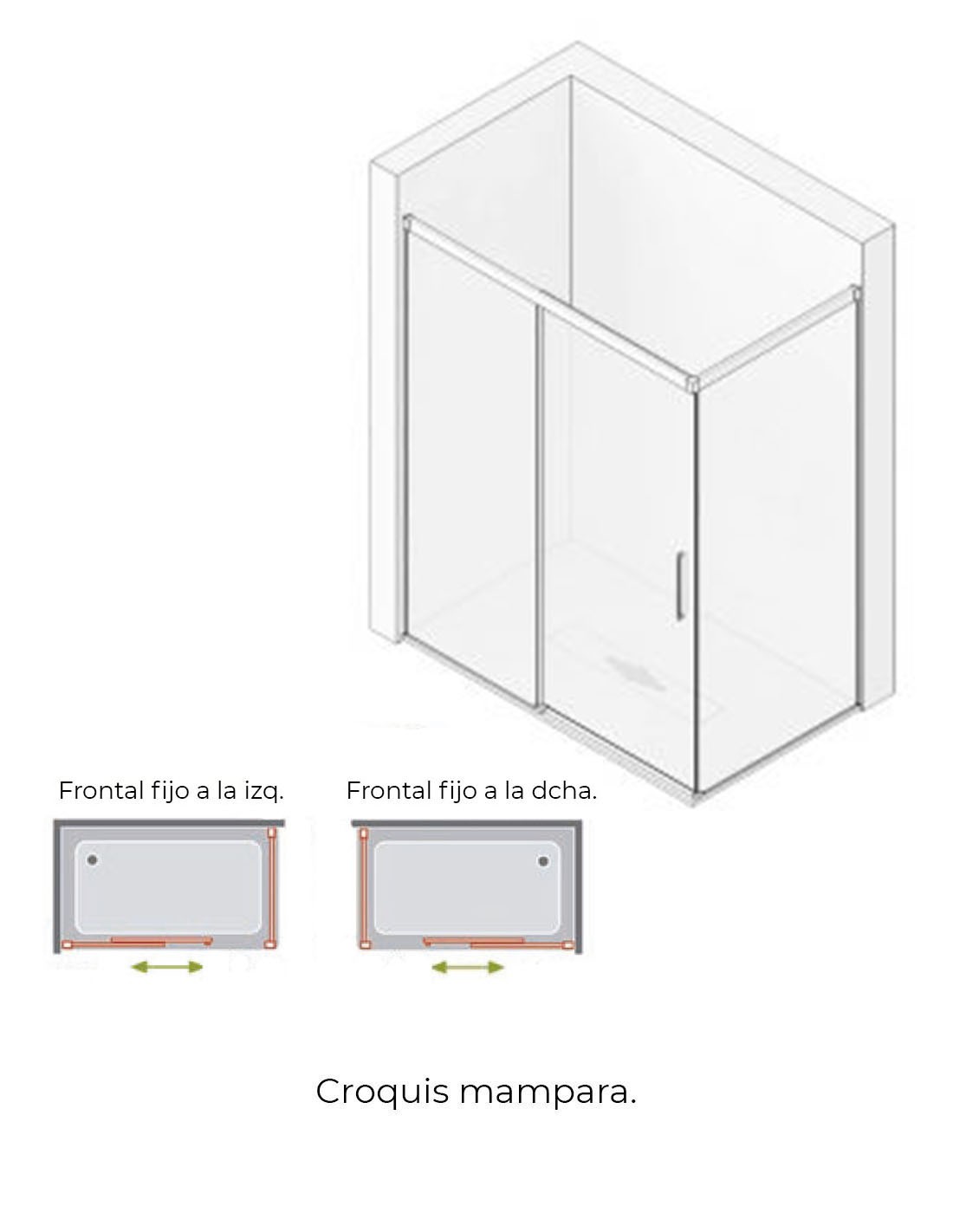 - Frontal 1 fijo + 1 puerta corredera + 1 lateral fijo