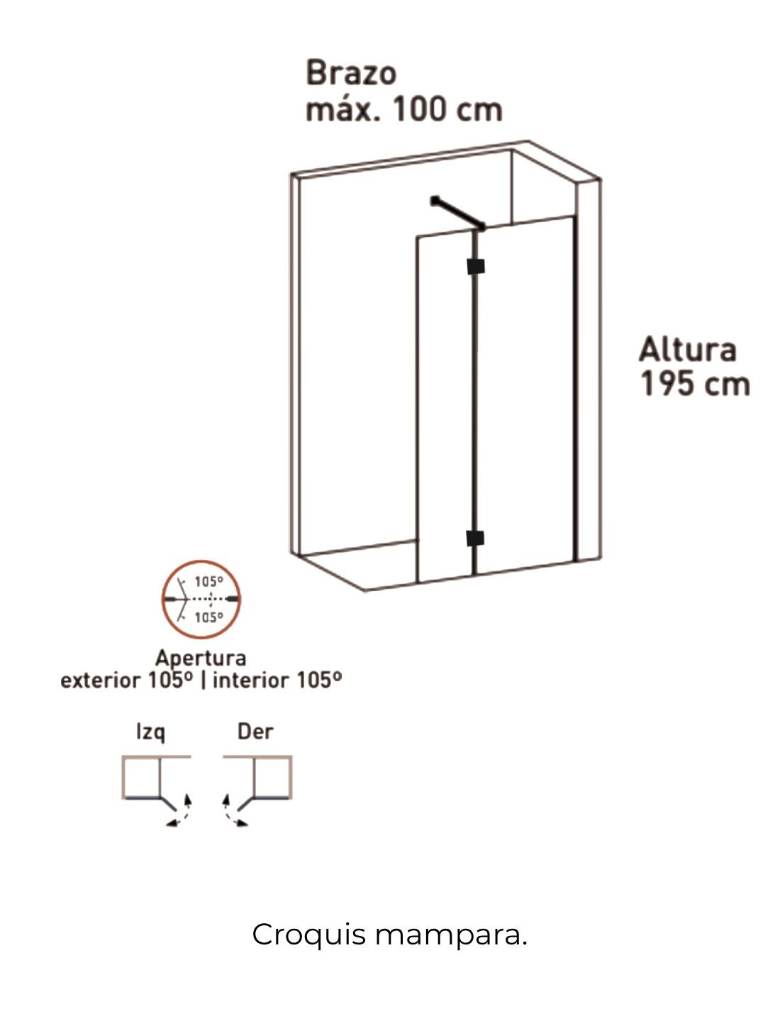 - Reversible: Posibilidad de invertir la mampara cuando se realiza la instalación, consiguiendo elegir la apertura que deseemos (a izquierda o derecha).