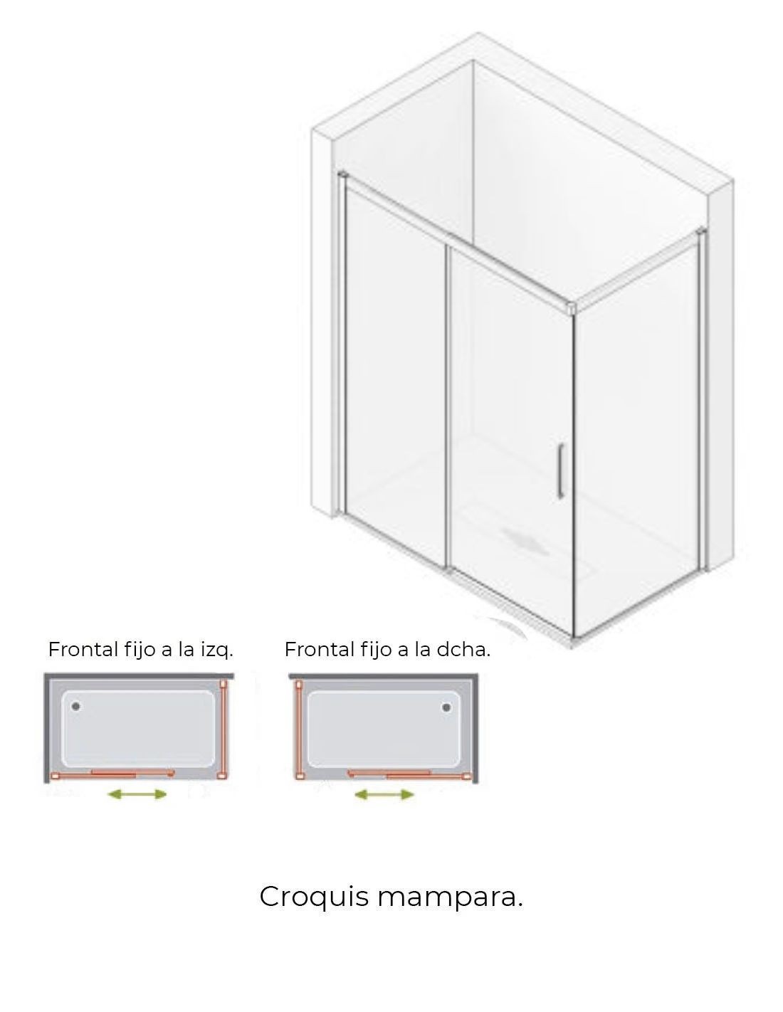 - Frontal 1 fijo + 1 puerta corredera + 1 lateral fijo
