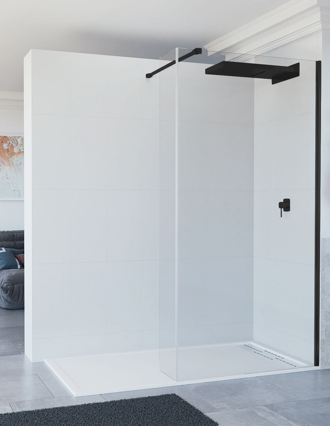 Mampara negra 2 hojas - cristal fijas BAMBÚ de Seviban