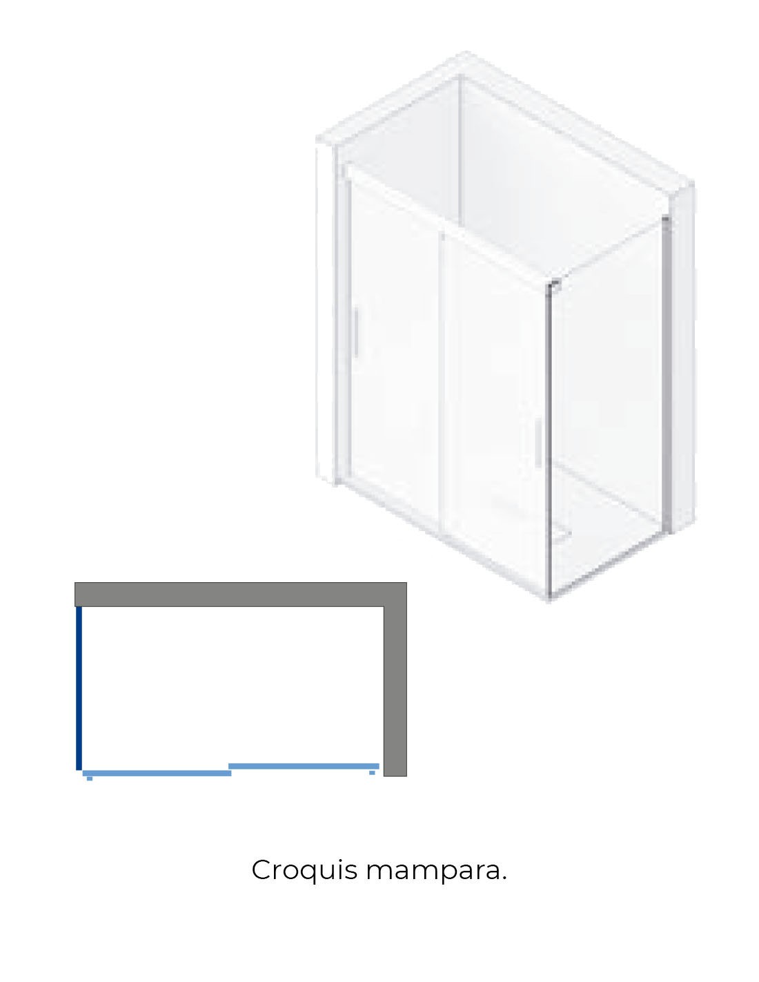 Mampara de ducha correderas sin perfiles - inferiores + lateral fijo croquis