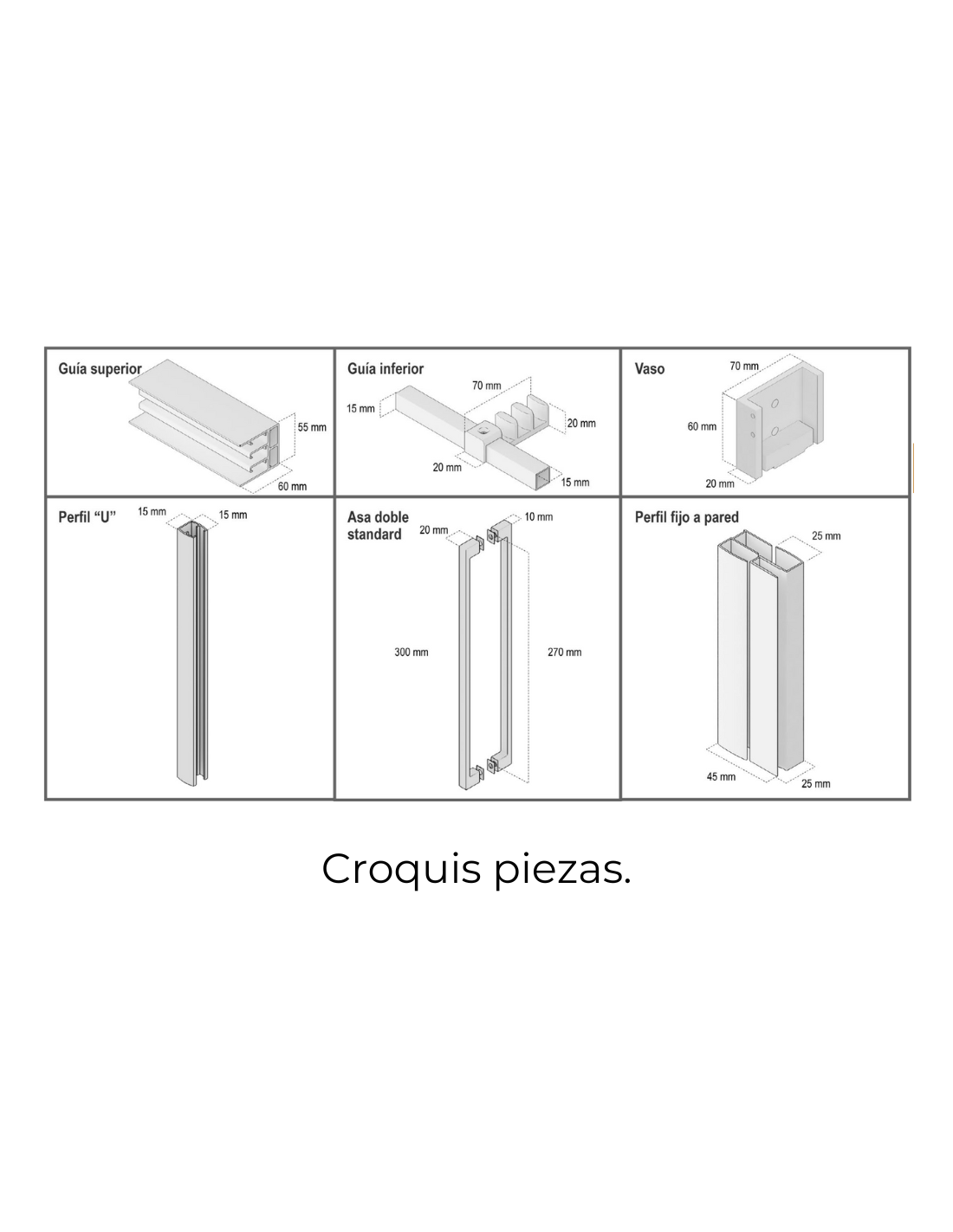 • Incluye perfil de compensación de 46 mm de aluminio. Permite compensar 2.5 cm. por cada lado.