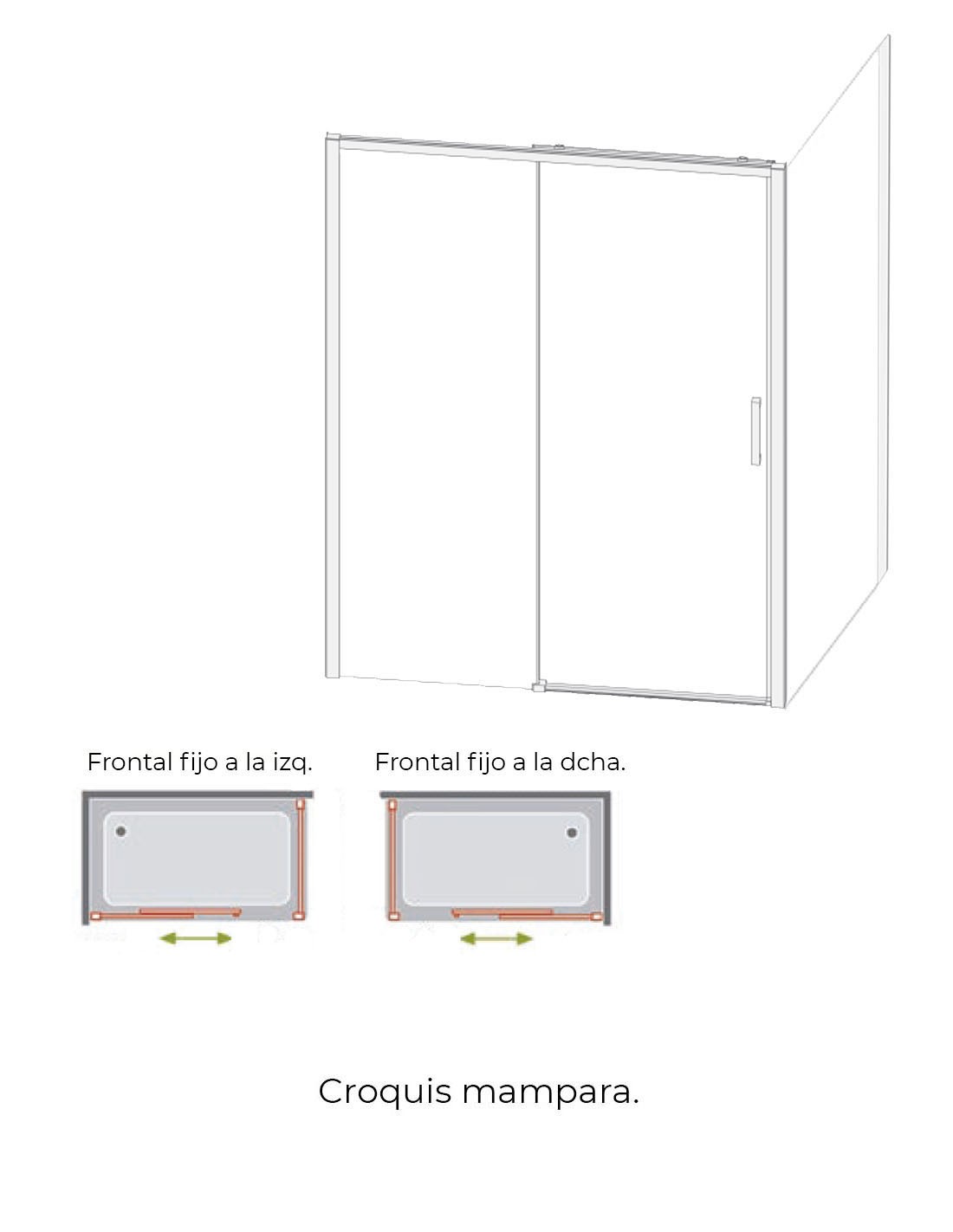 - Frontal 1 fijo + 1 puerta corredera + 1 lateral fijo