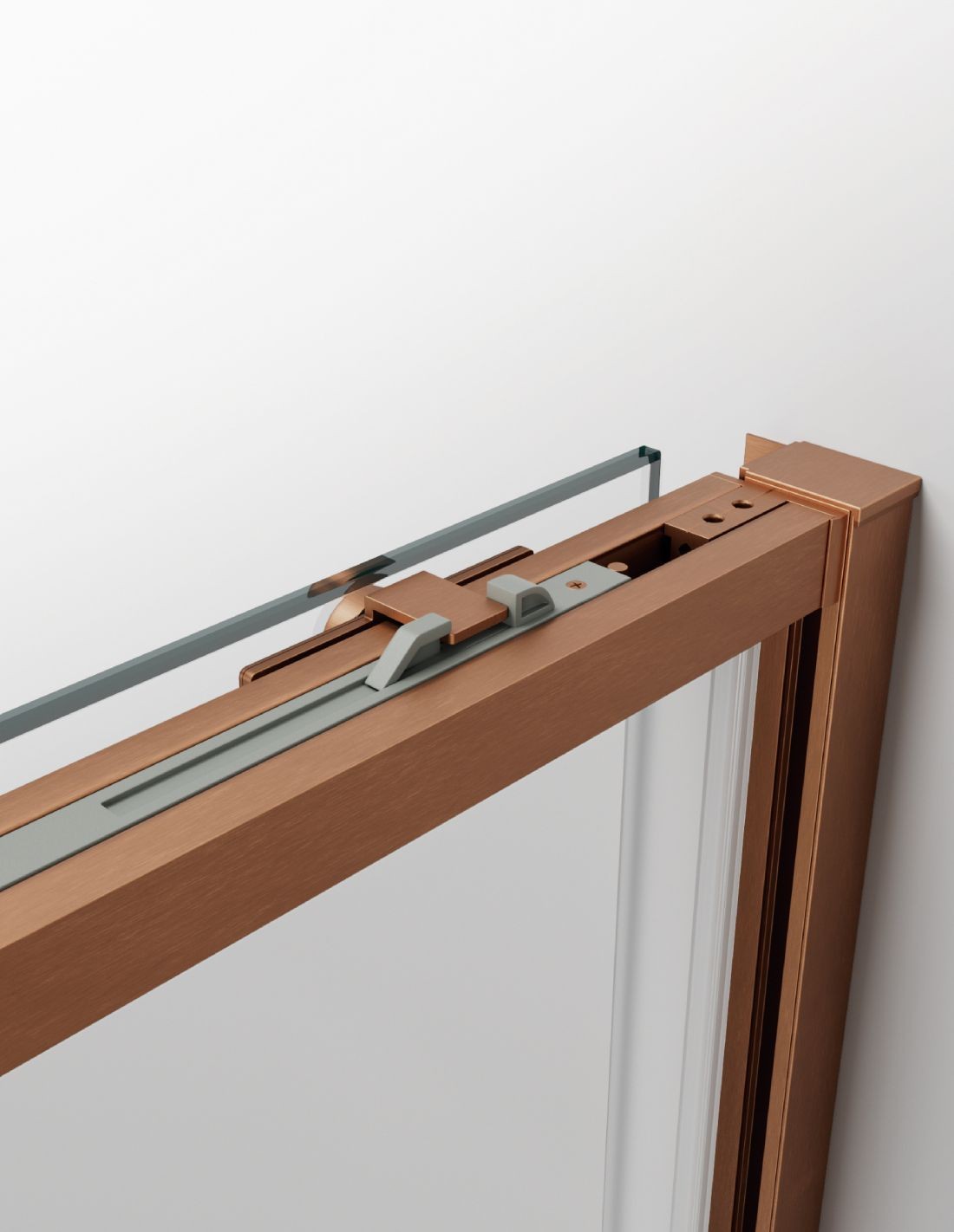 Perfilería en cobre. También disponible en cromo o negro mate.