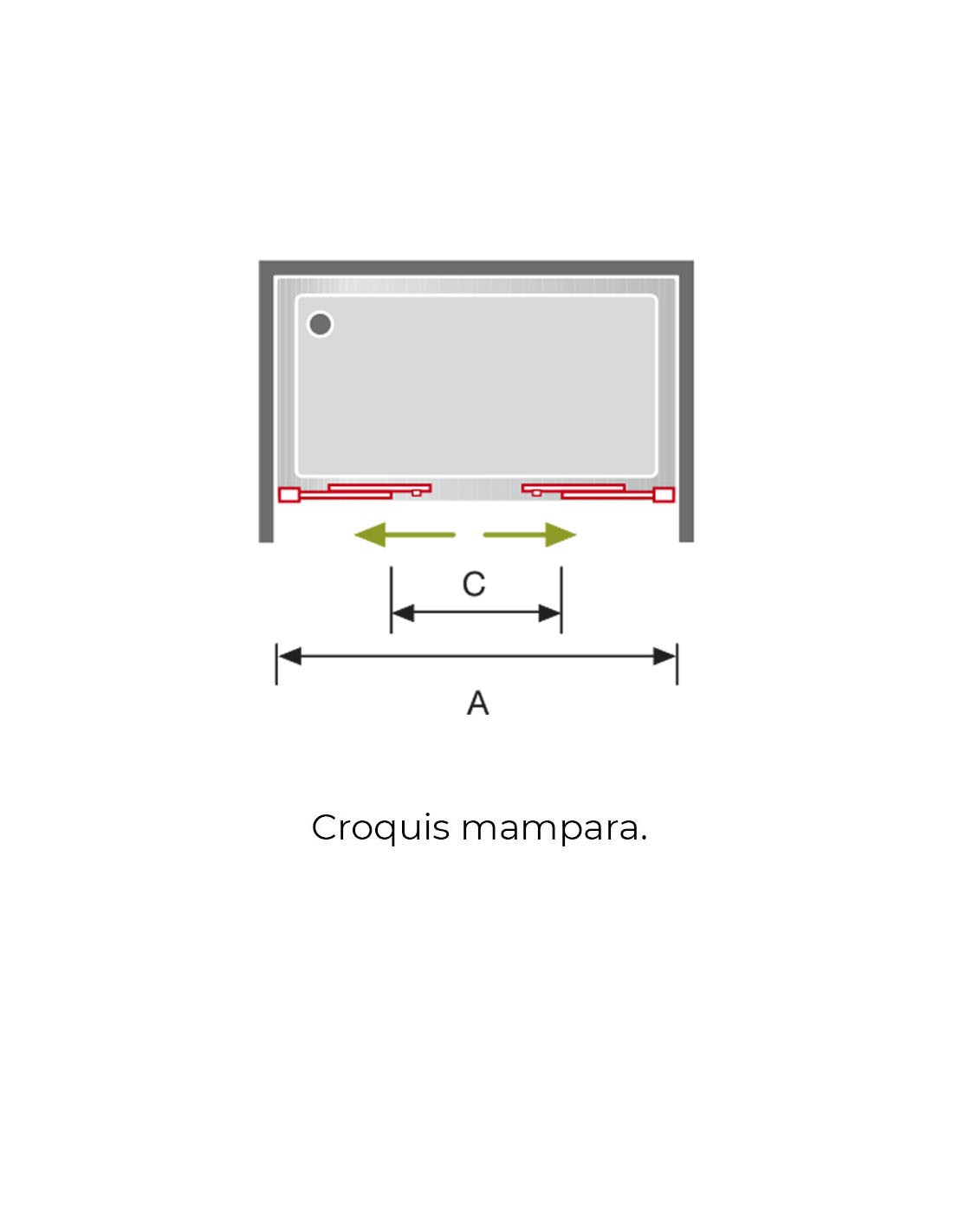 - Frontal 1 fijo + 1 puerta corredera + 1 lateral fijo