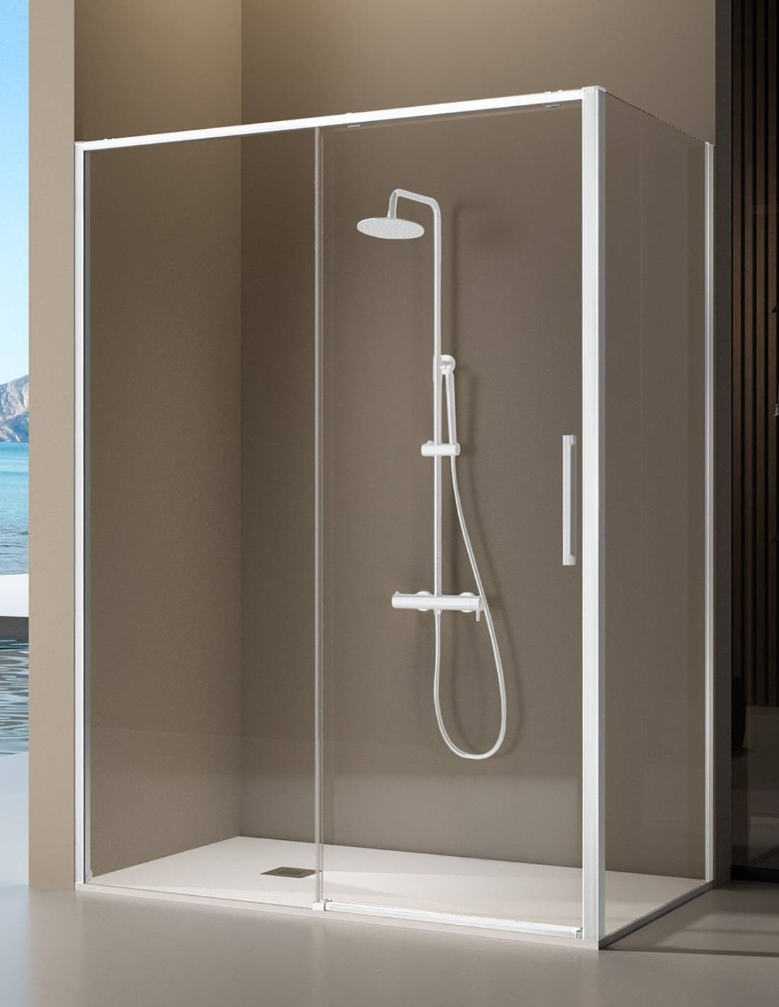 Mampara de ducha frontal + fijo lateral blanco - DELTA de Kassandra