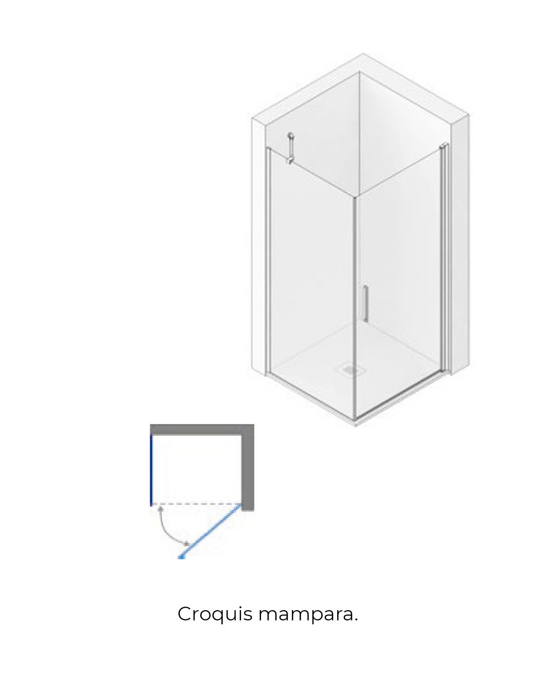 Mampara fijo más abatible modelo AMINA croquis