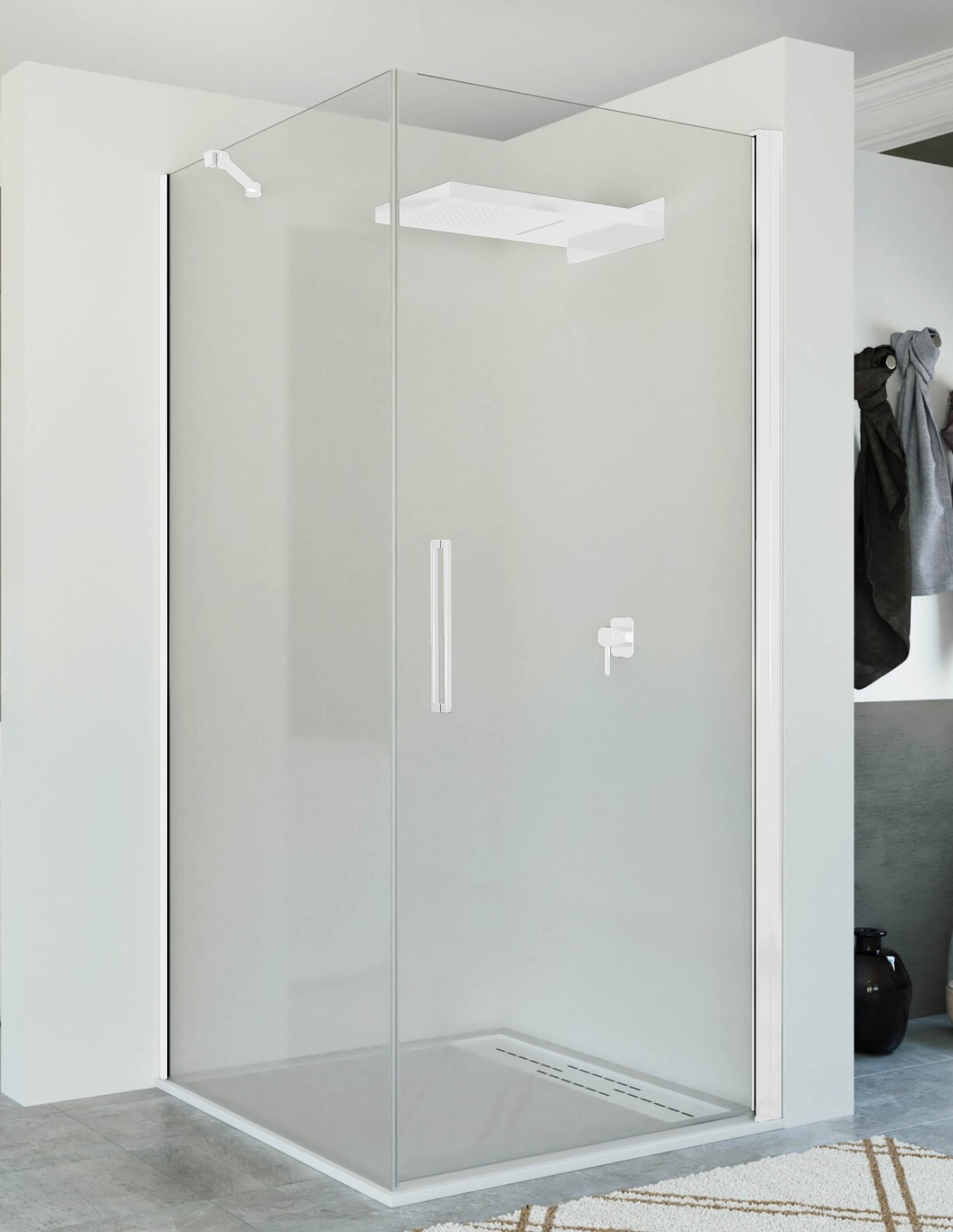 Mampara blanca angular fijo más abatible - AMINA de Seviban