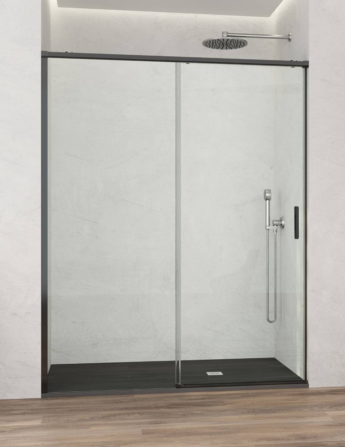 Mampara de ducha fija y corredera freno amortiguado negra - ISAAC de Bathplus