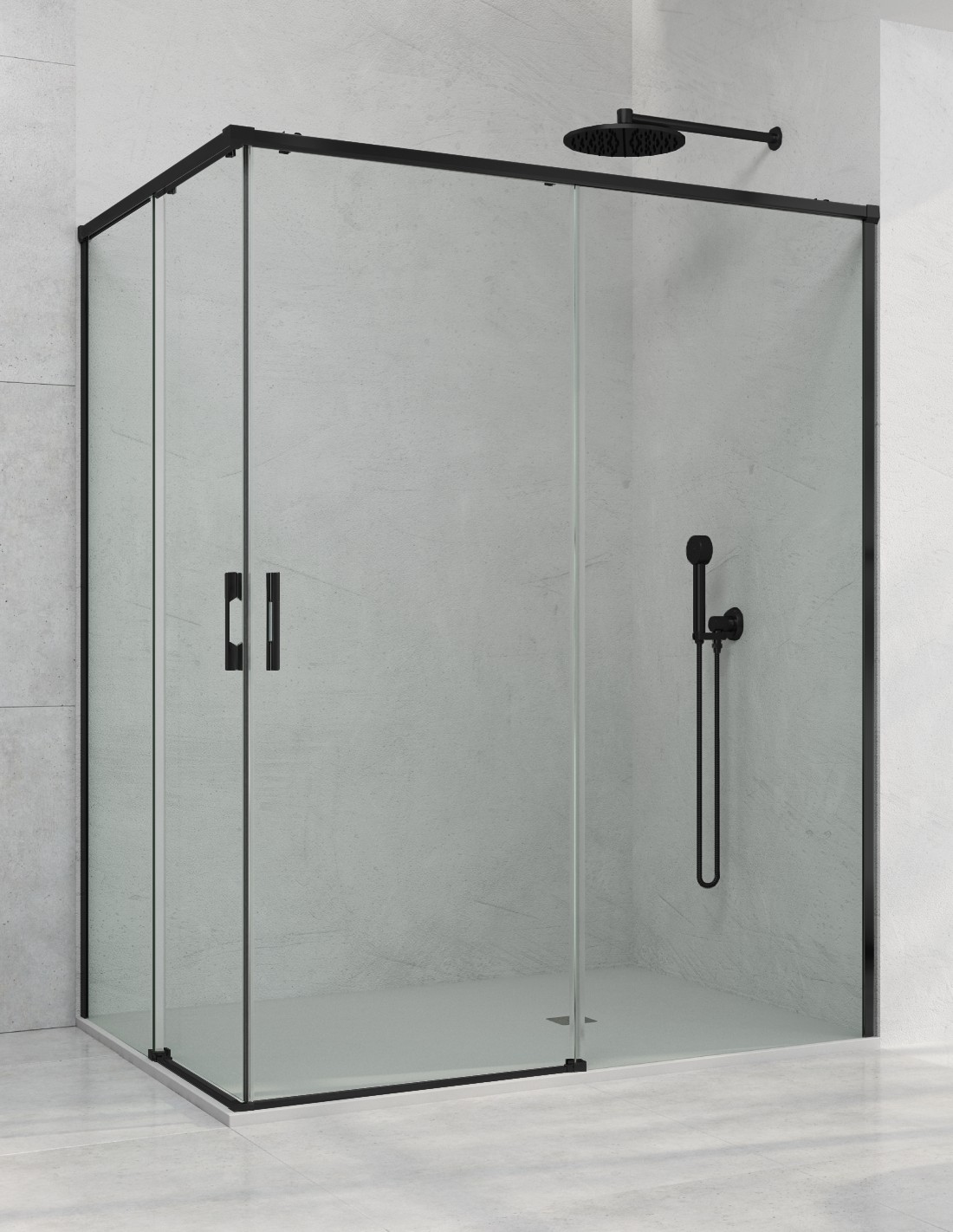 Mampara angular 2 fijos y 2 correderas negro