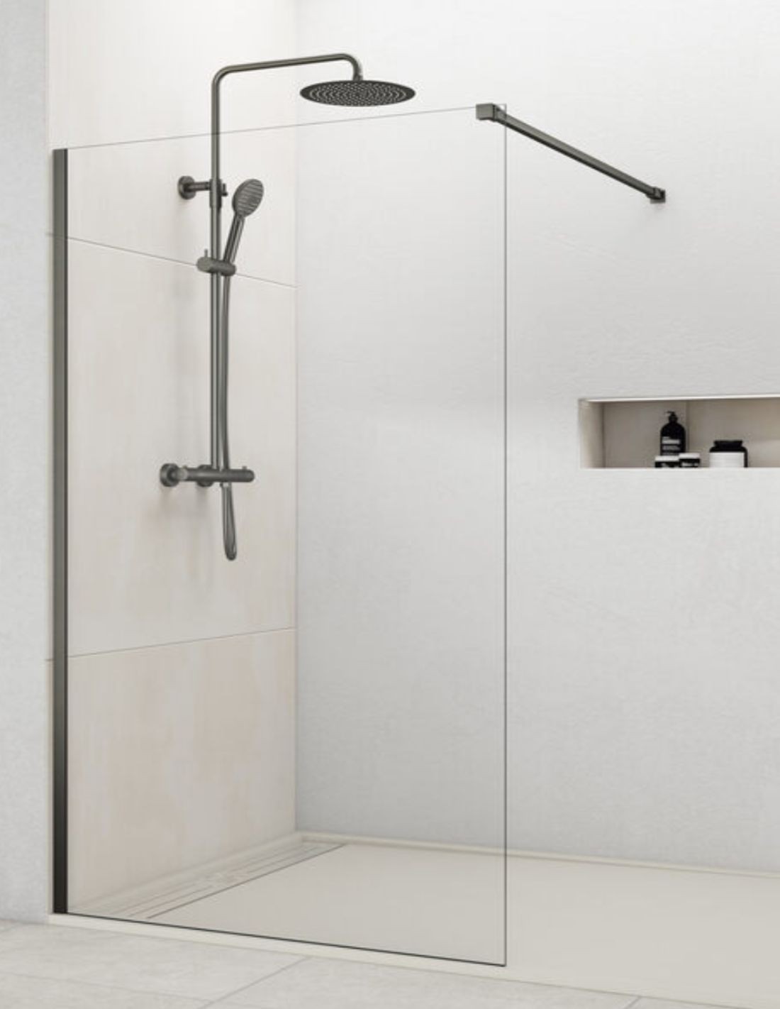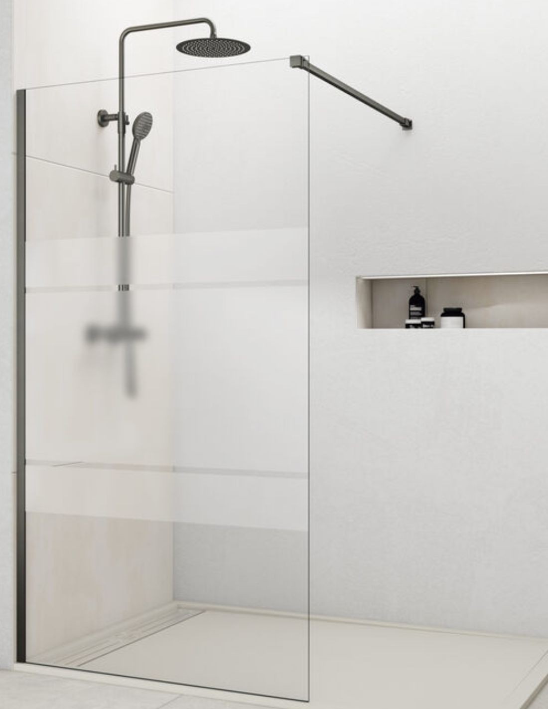 Mampara titanio fija modelo SCREEN de GME. Ideal para baños que buscan estar a la última y tener elegancia.