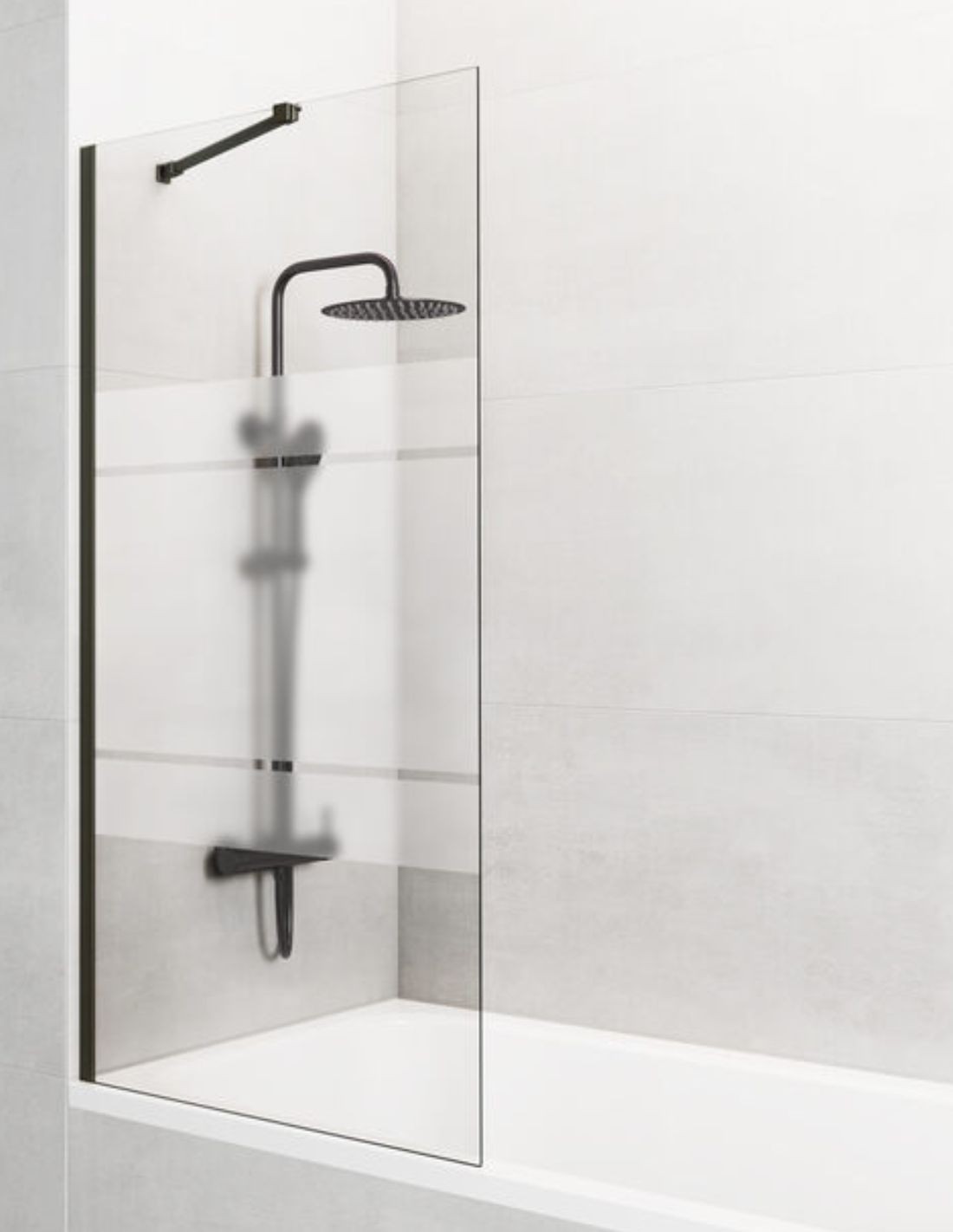 Mampara bañera titanio SCREEN de 1 fijo con vidrio transparente decorado. ¡Conoce nuestra mampara!