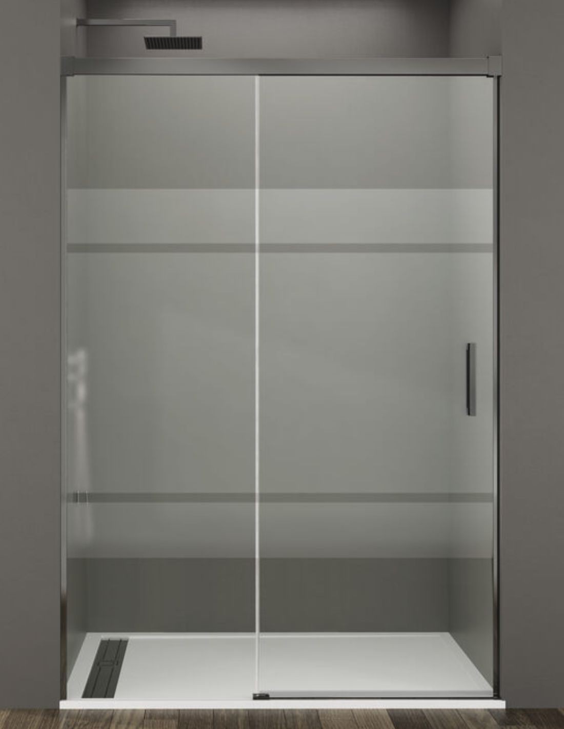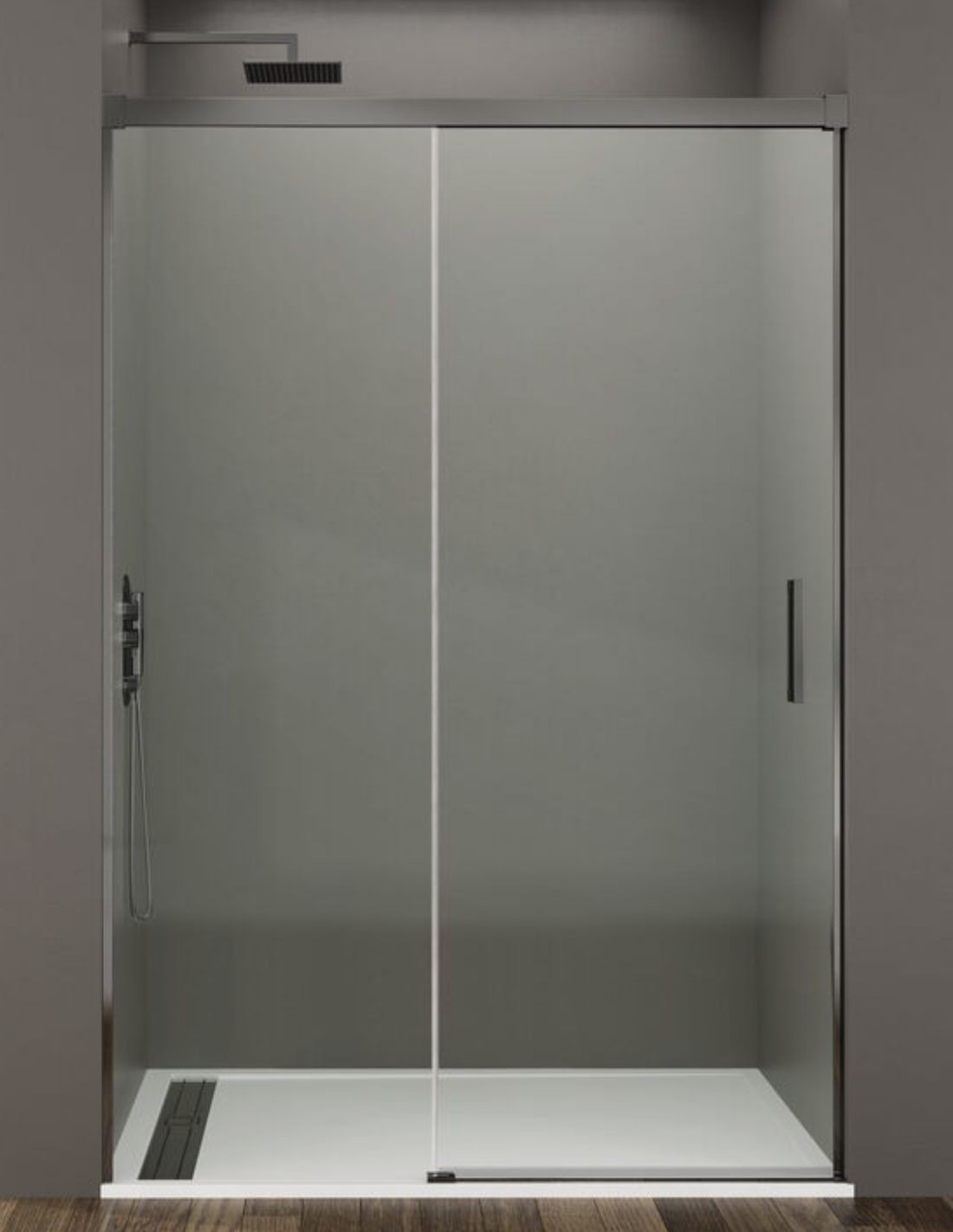 Conoce más sobre la mampara titanio frontal de 1 fijo y 1 corredera: