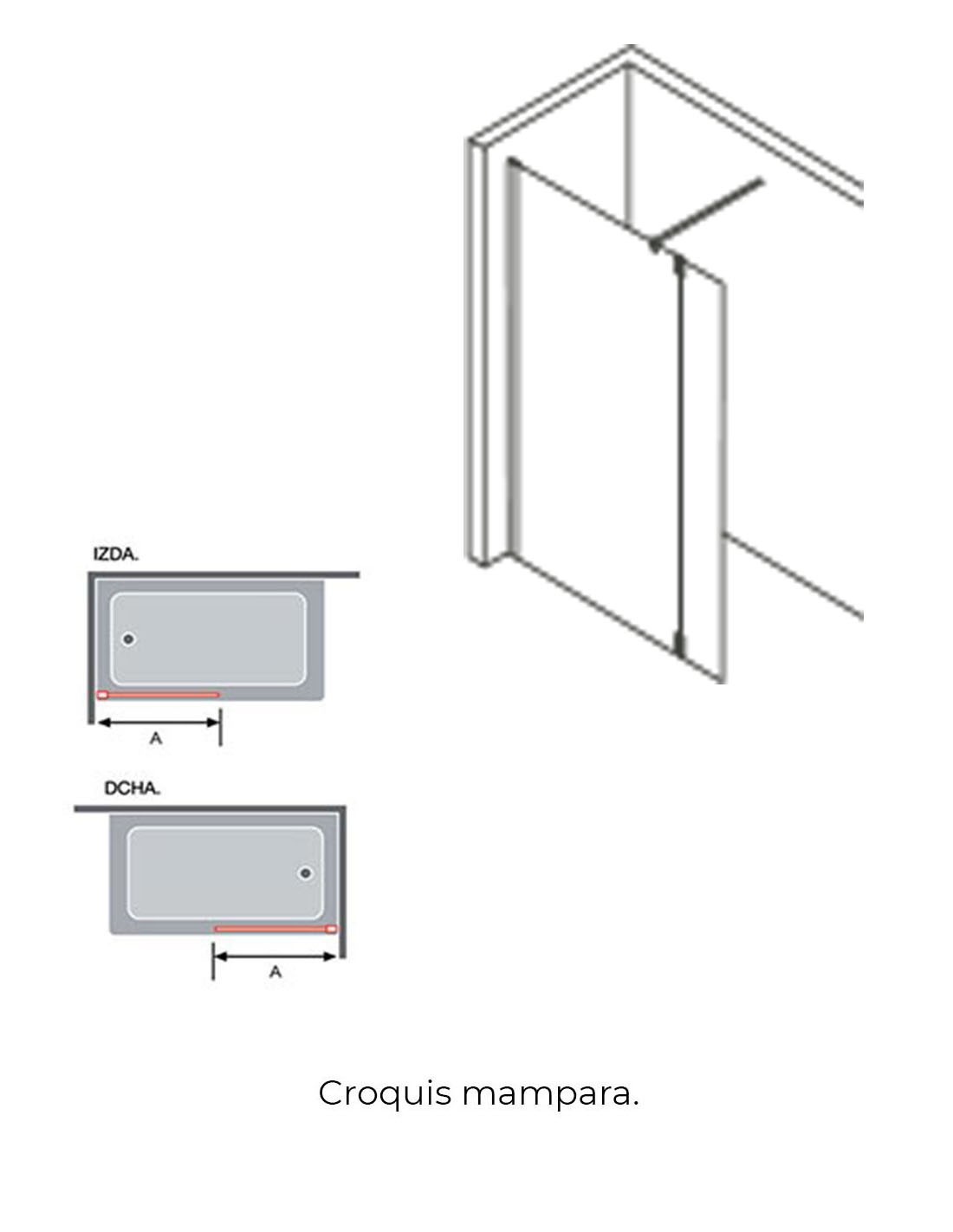 - Mampara de 1 hoja fija y 1 hoja abatible de 35 cms.