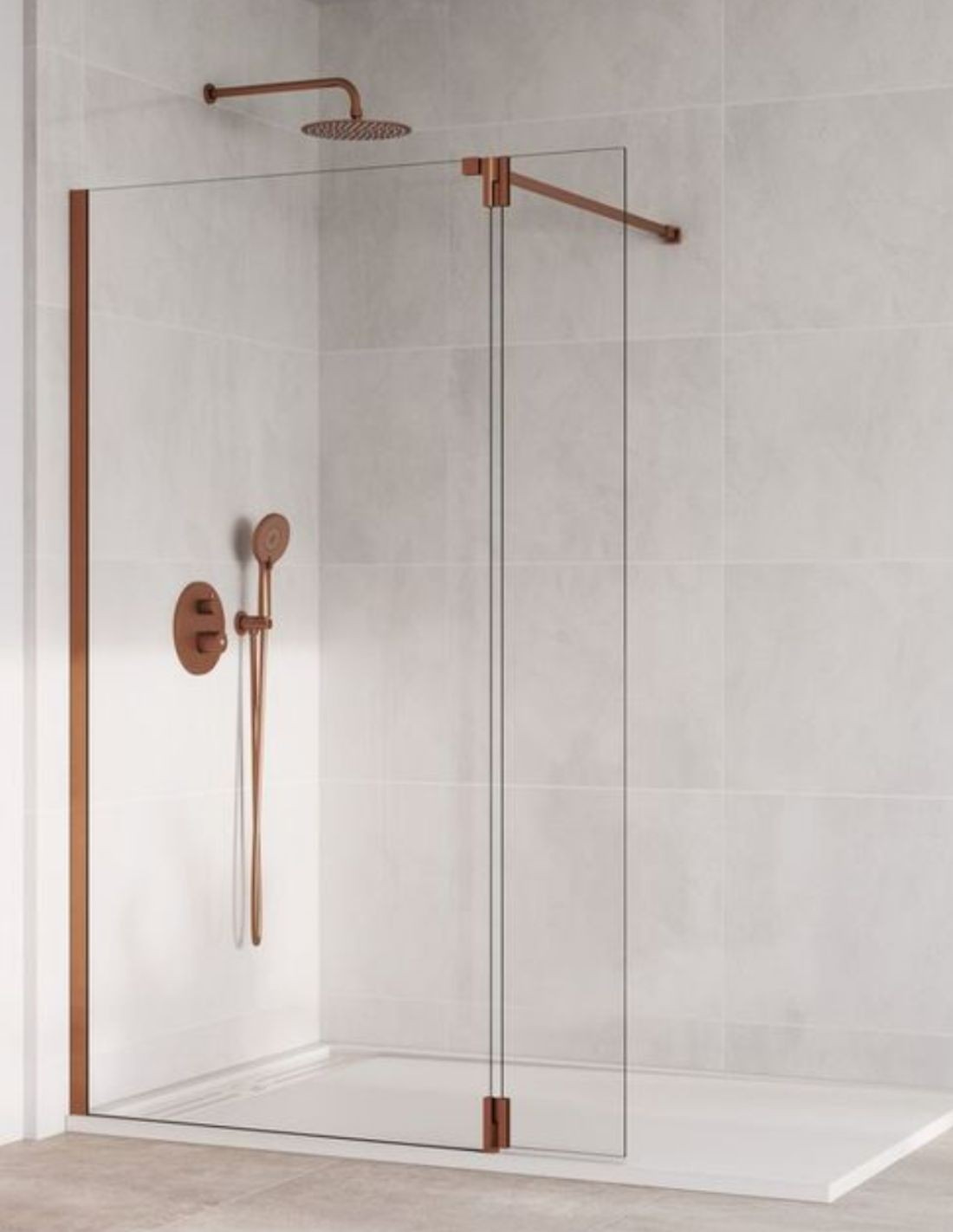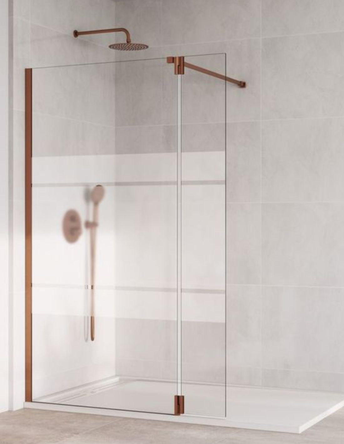 Mampara cobre fija y abatible modelo SCREEN de GME. Ideal para baños que buscan estar a la última y tener elegancia.