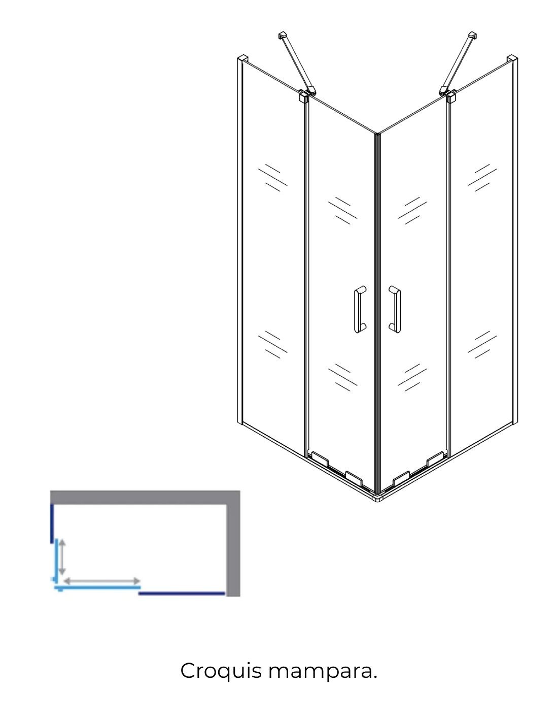 - Mampara de ducha angular con 2 puertas correderas + 2 hojas fijas.