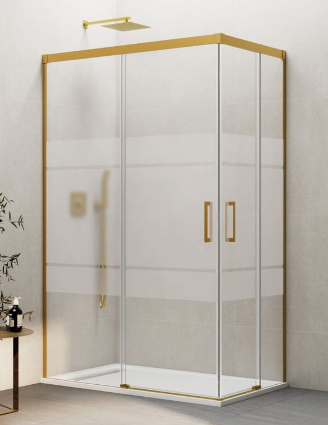 Conoce más sobre la mampara angular Basic dorada: