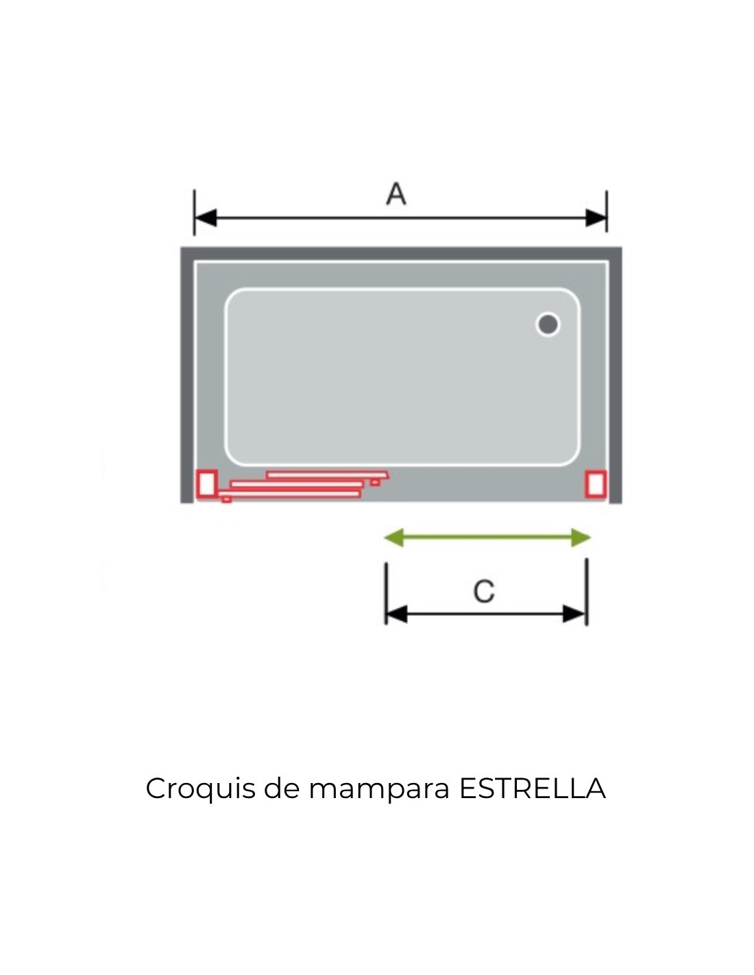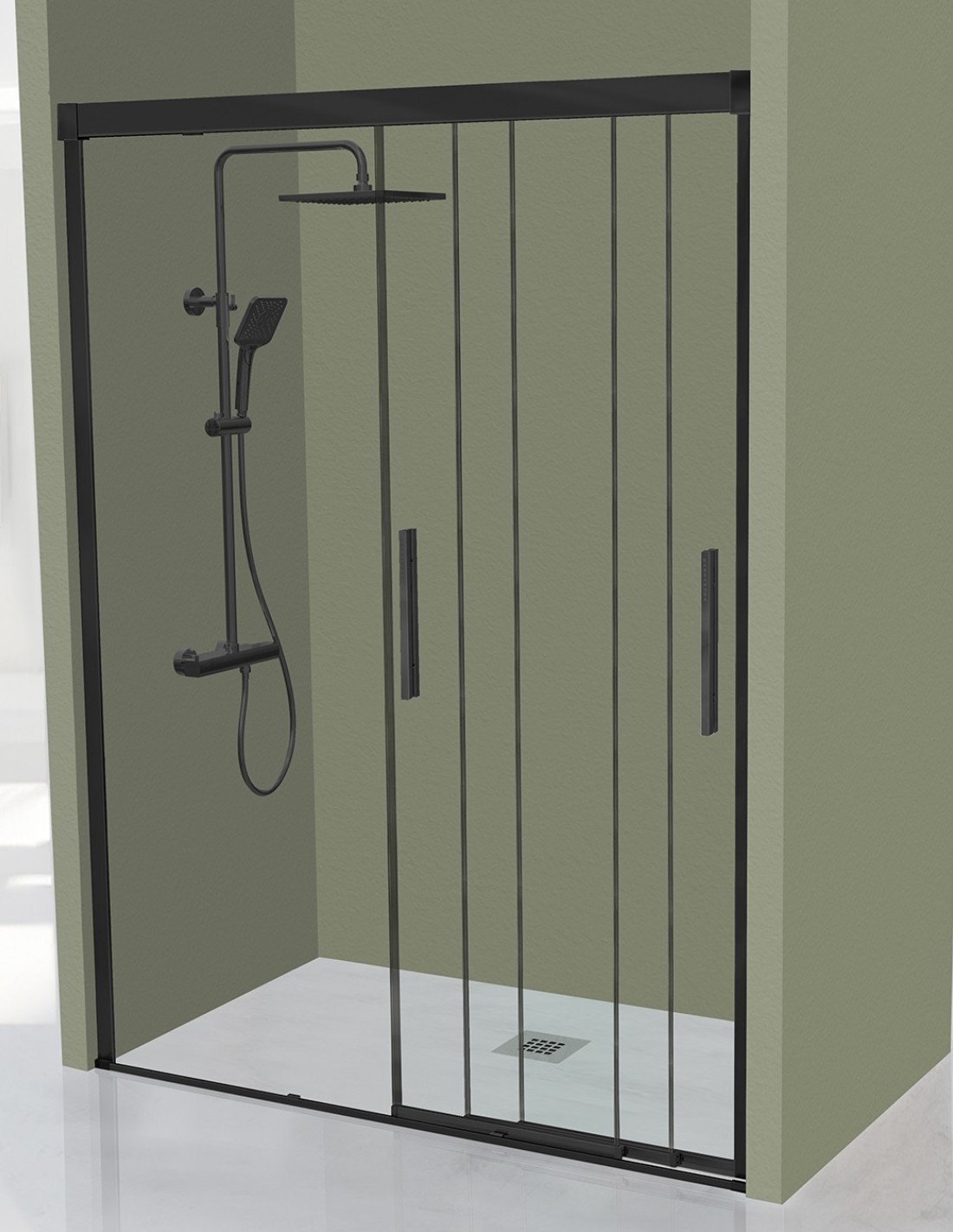 Croquis Mampara de ducha negro mate frontal 3 puertas correderas ESTRELLA - de Kassandra