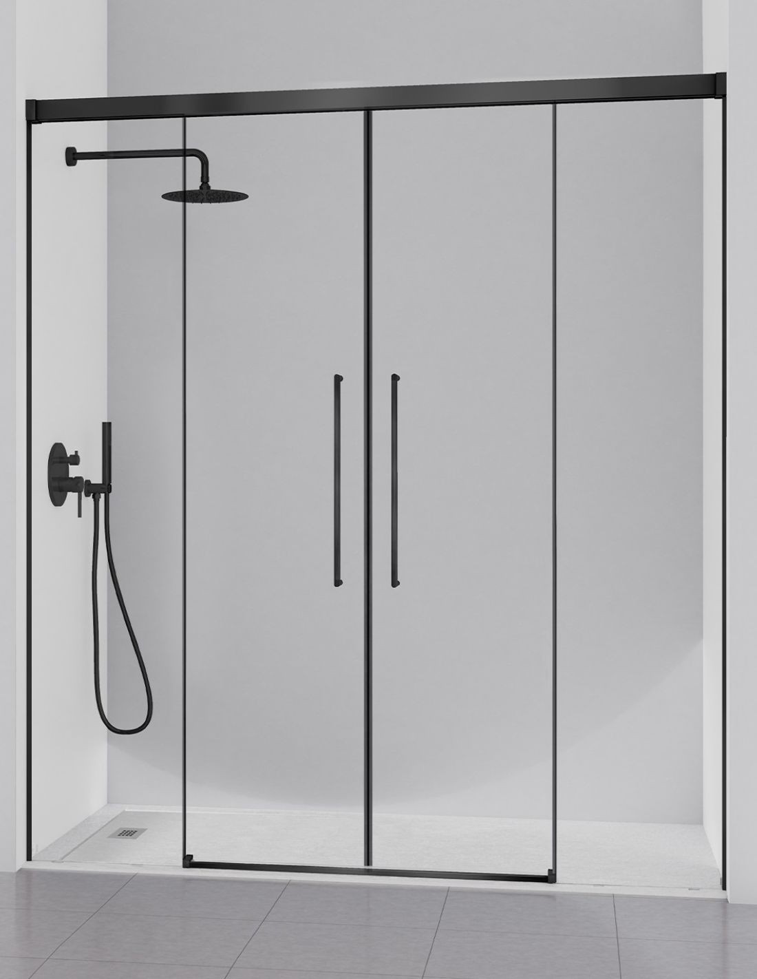 Características principales de la mampara angular negro mate 2 fijos y 2 puertas correderas - PAVIA de Kassandra.